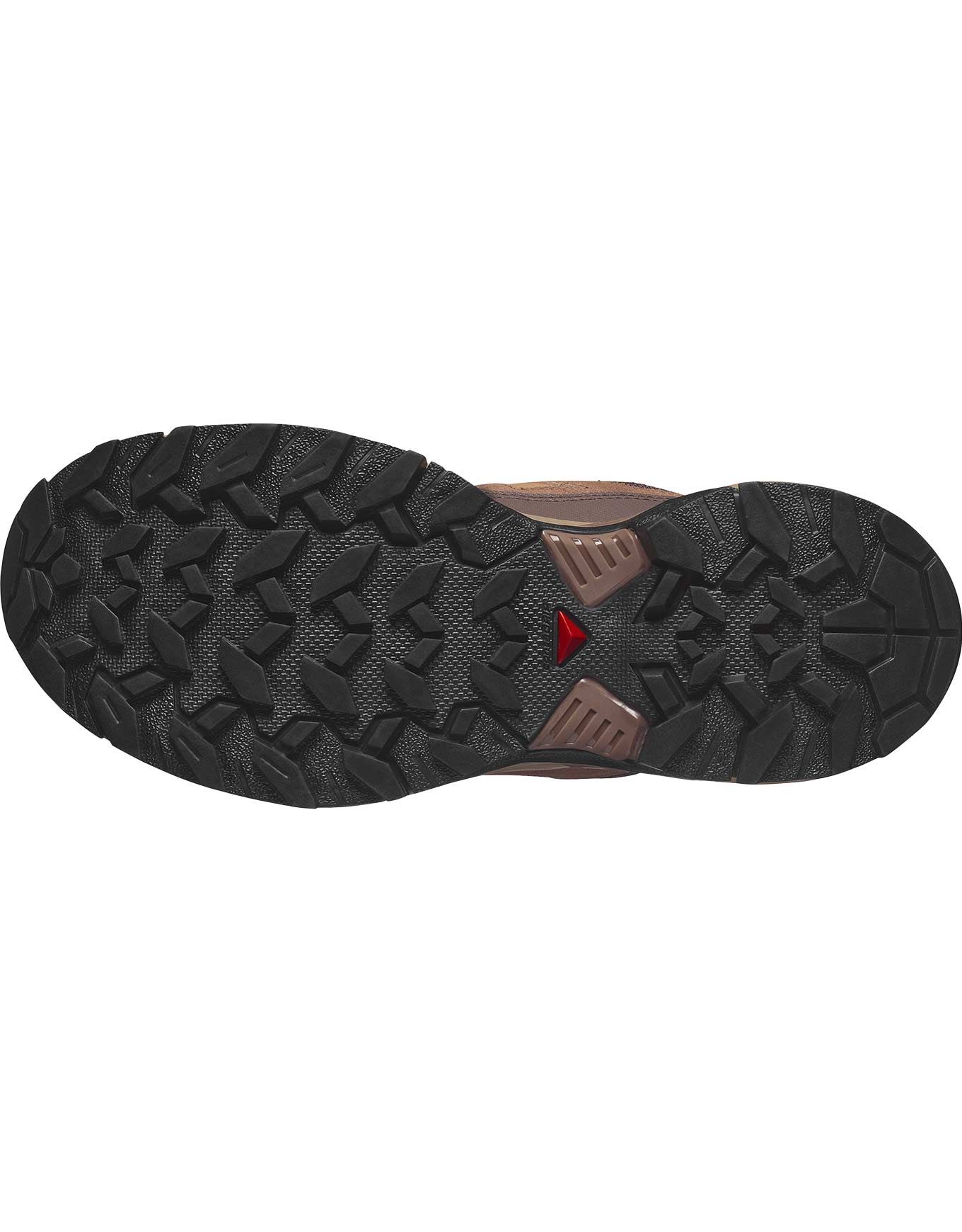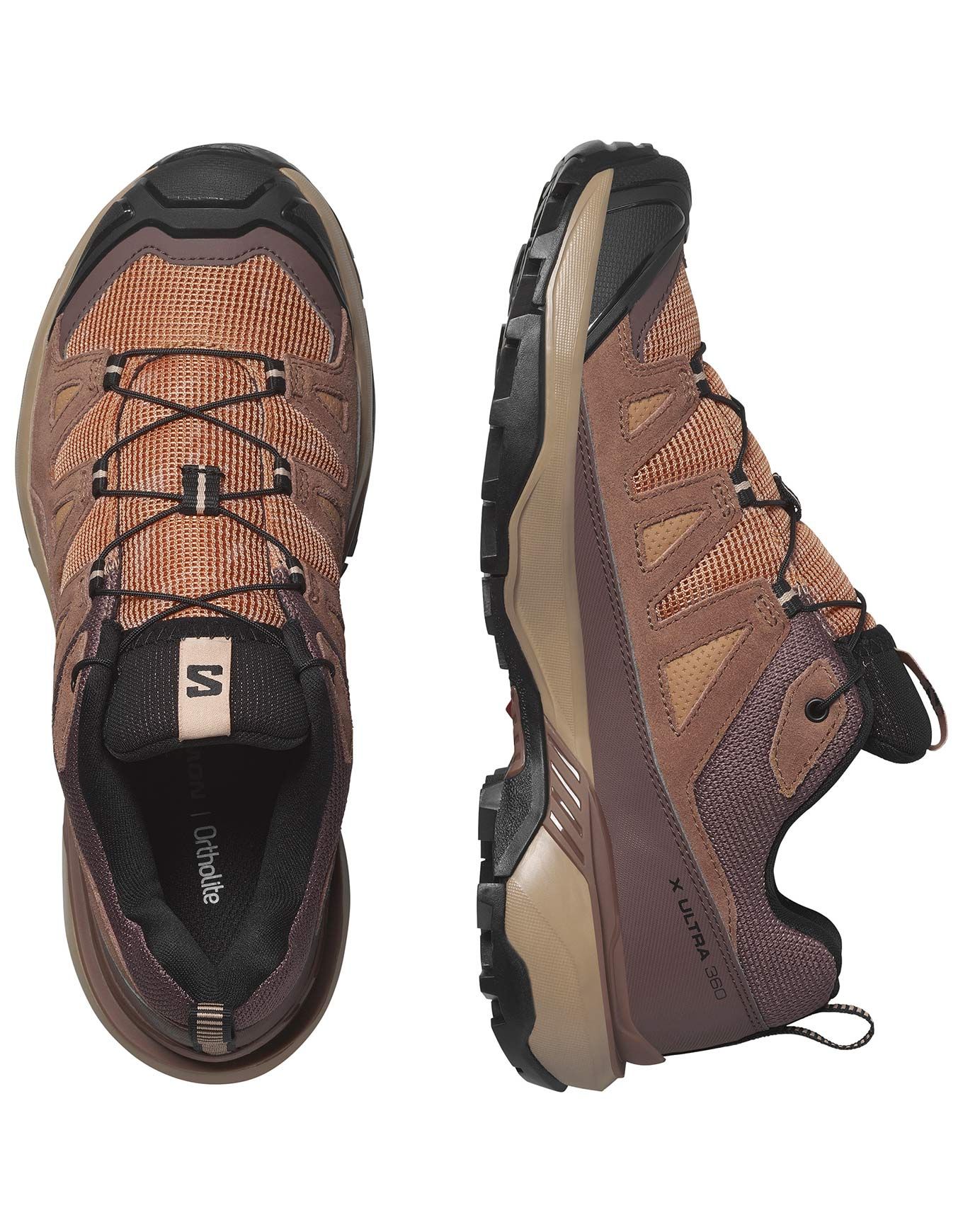 Chaussure de randonnée Salomon X Ultra 360 LTR Cork/Cognac/Peppercorn pour femme, offre stabilité et accroche All Terrain Contagrip® sur tout terrain grâce au châssis ADV-C, au cuir protecteur et à la semelle OrthoLite™ respirante.