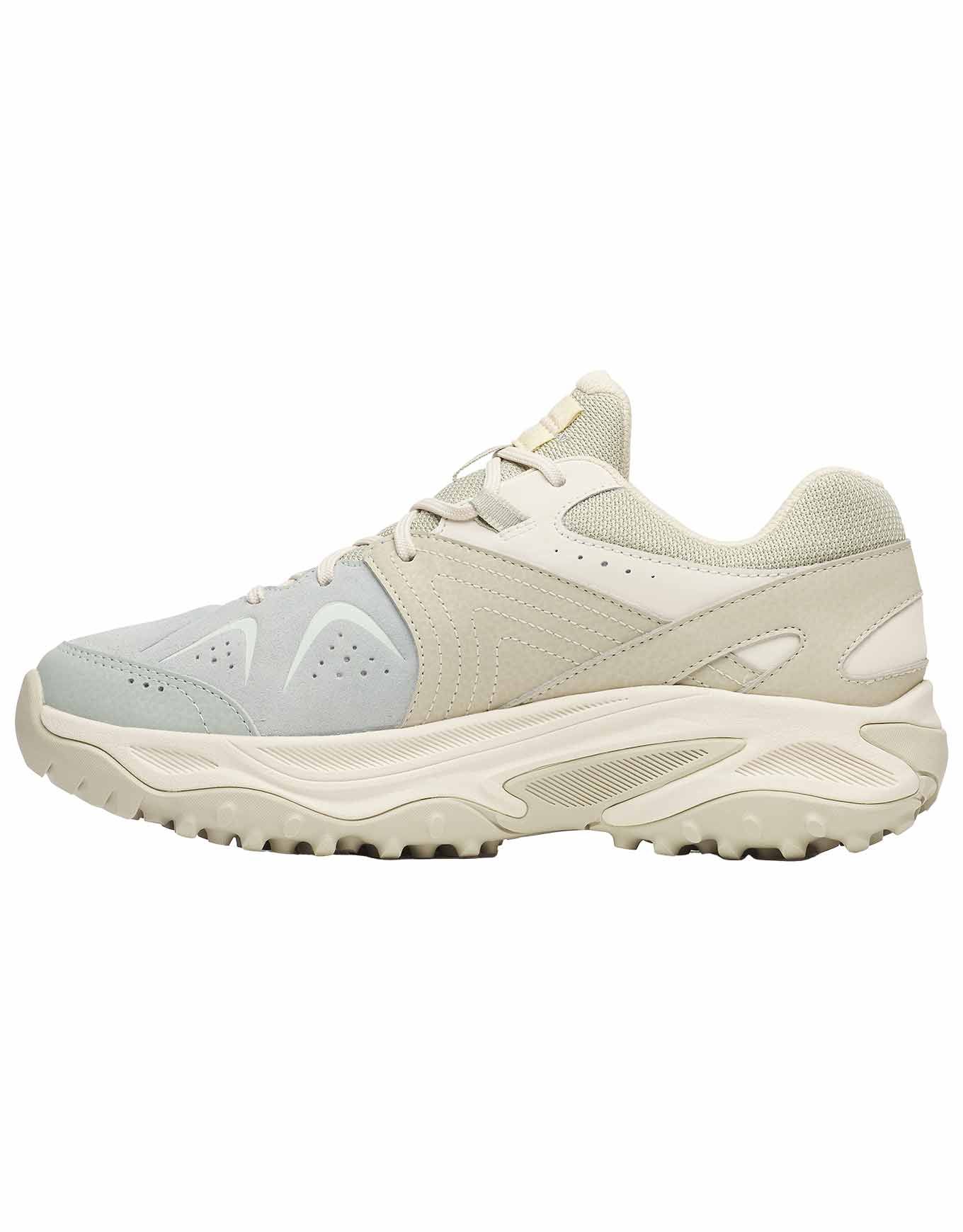 Une association de cuir suédé, retenu pour sa longévité, et d’empiècements en mesh résistant à l’abrasion compose la tige de cette chaussure, ce qui optimise la circulation de l’air. La protection est renforcée par des éléments synthétiques résistants à l’abrasion positionnés au niveau du talon et de la pointe.