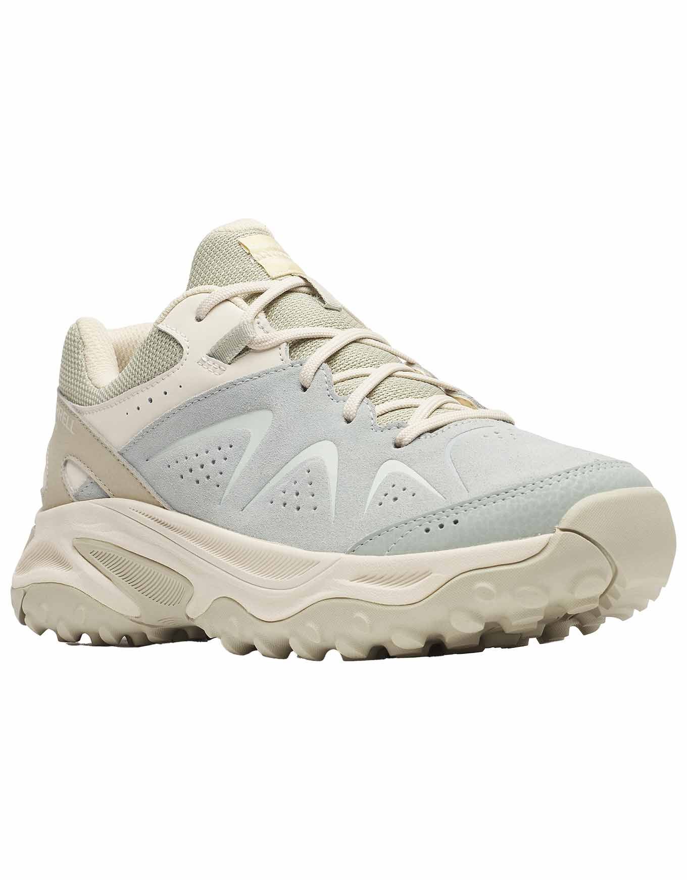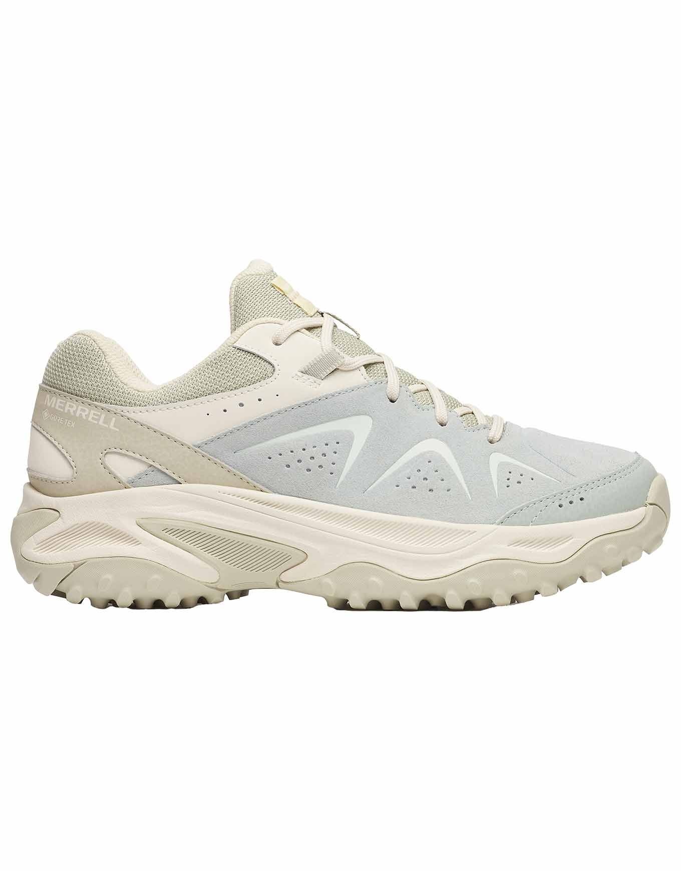 Chaussure de randonnée femme Merrell Yokota 3 GTX Calcite, imperméable GORE-TEX, tige cuir suédé et mesh respirant, semelle EVA légère et adhérence caoutchouc pour journée sur sentiers variés.