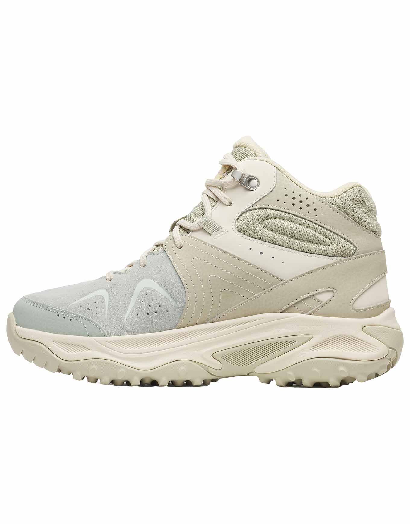 Pour la tige mid, du cuir suédé est associé à des empiècements mesh résistant à l’abrasion, ce qui optimise à la fois la tenue du pied et la circulation de l’air, tout en renforçant la durabilité. Une protection accrue est assurée par des renforts synthétiques résistants à l’abrasion positionnés au talon et à la pointe.