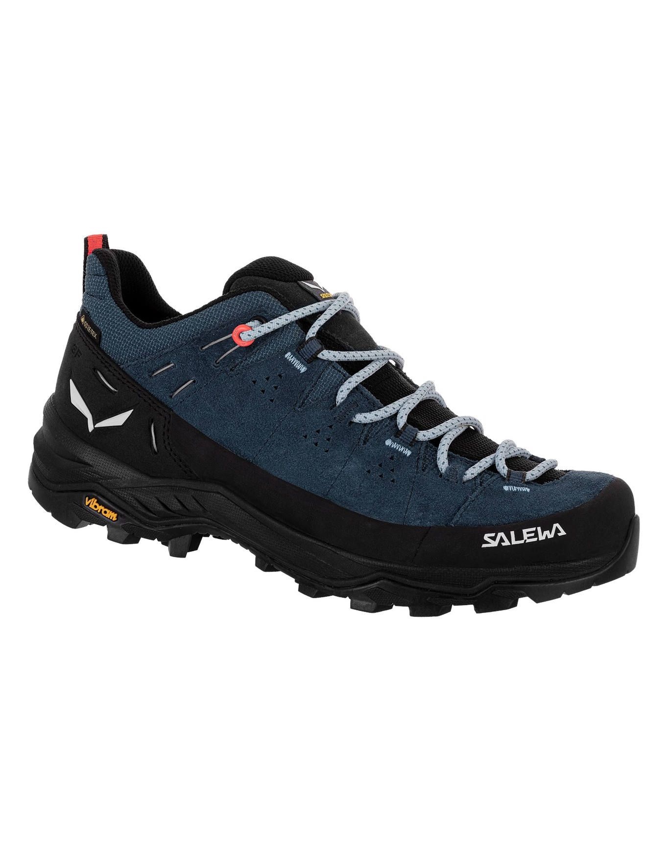 Chaussure de trekking femme Salewa Alp Trainer 2 GTX avec membrane GORE-TEX, semelle Vibram Alpine Hiking, système 3F et Ortholite pour maintien, adhérence et confort sur tout terrain montagnard.