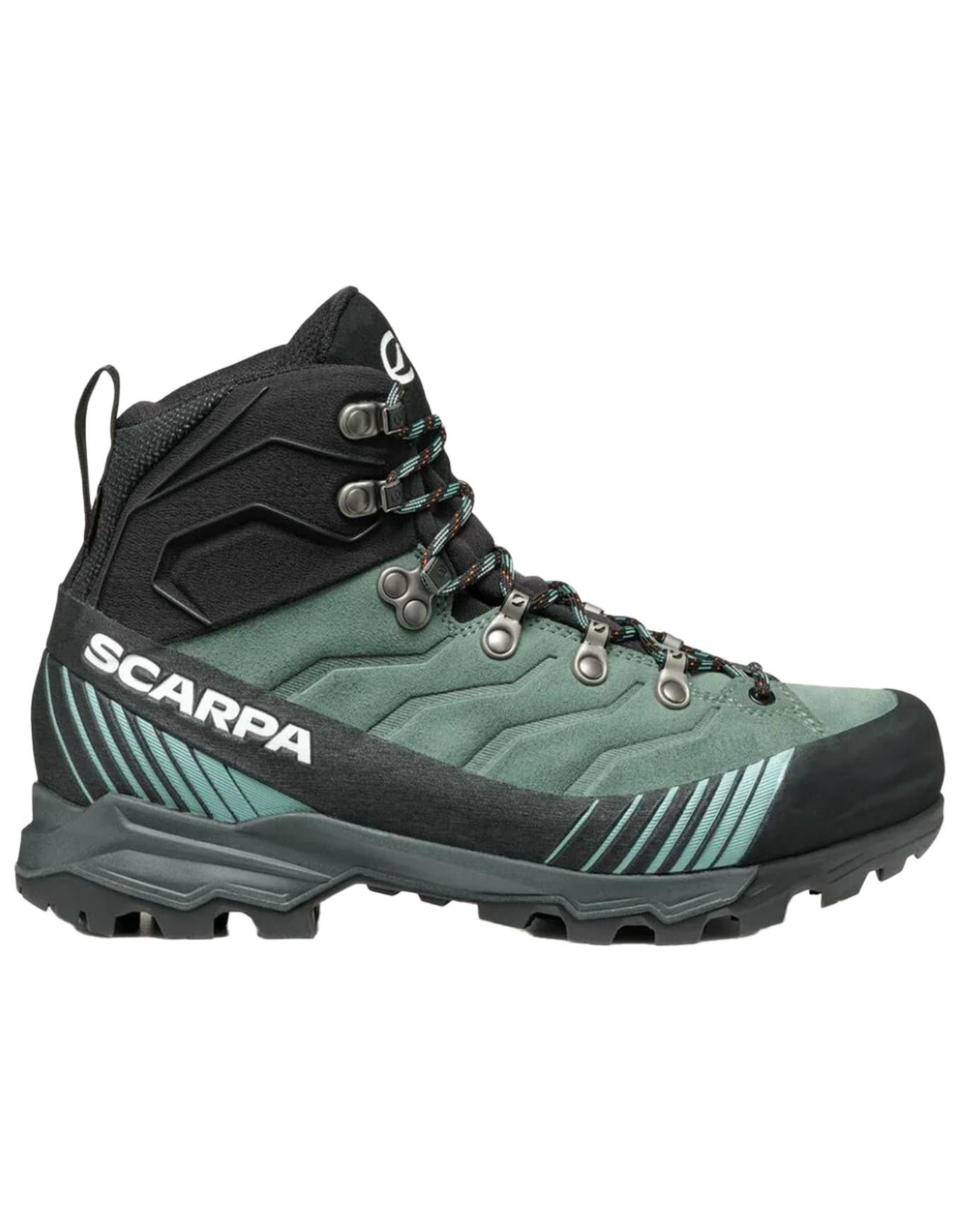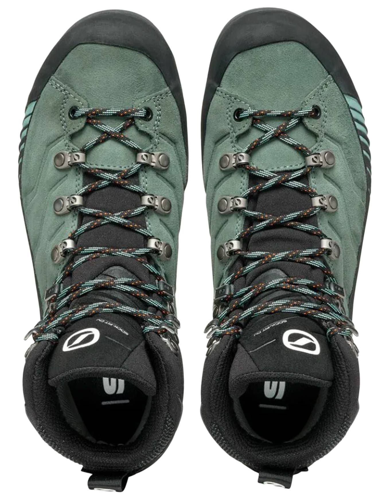 Chaussure de montagne femme Scarpa Ribelle Trek GTX en cuir Perwanger hydrofuge et membrane GORE-TEX pour trekking technique par tout temps, laçage précis jusqu’à la pointe et semelle Vibram adhérente.