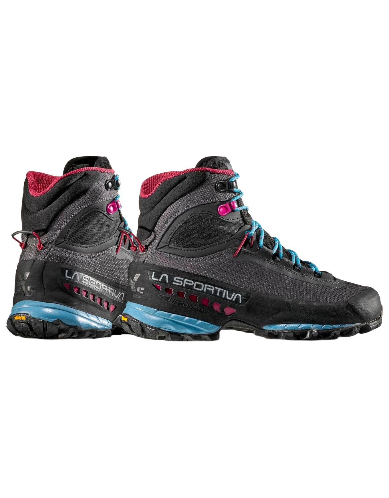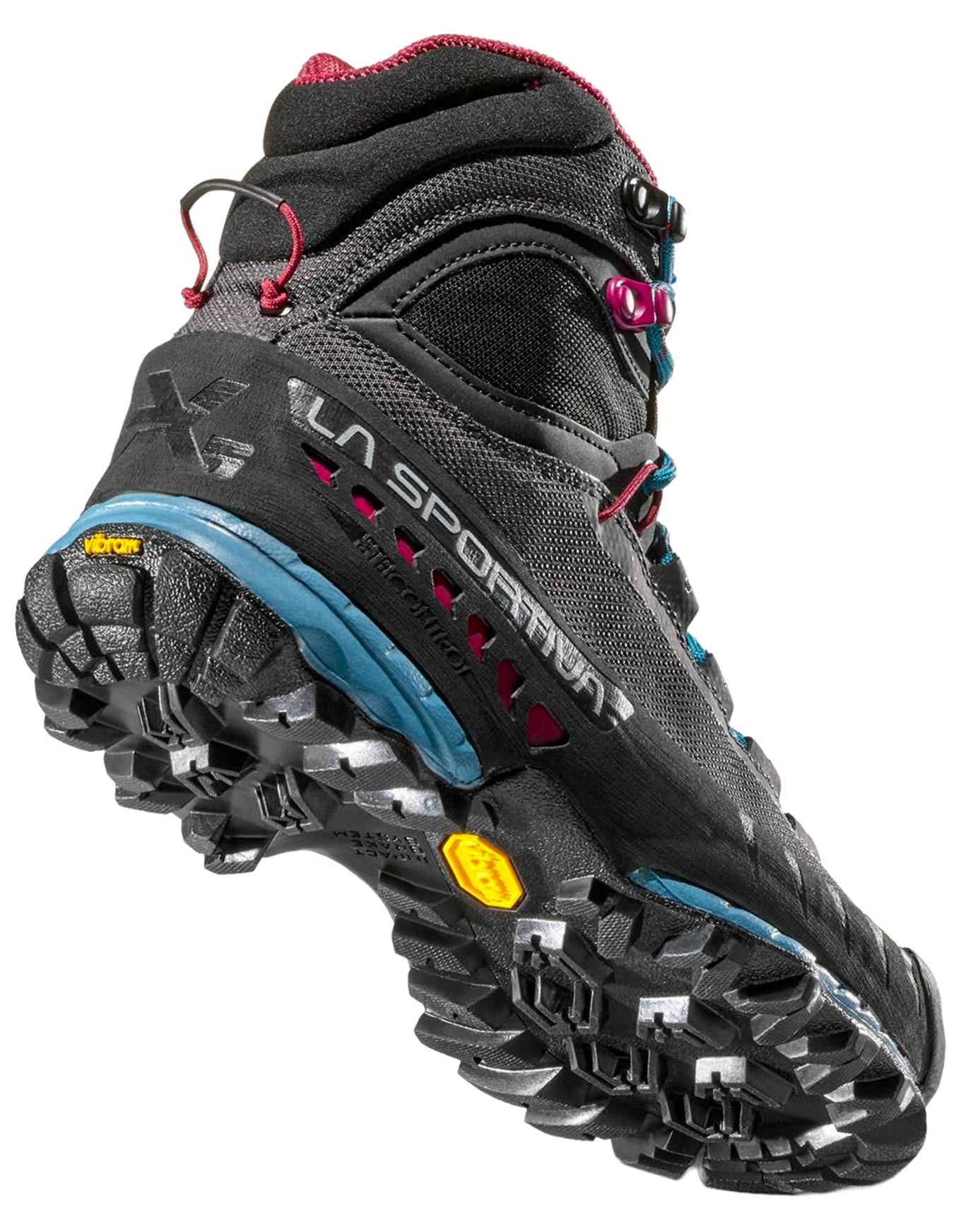 La Sportiva TXS GTX, chaussure haute de randonnée technique femme, combine membrane GORE-TEX respirante, semelle Vibram MegaGrip adhérente et collier rembourré pour maintien ankle et confort sur terrain rocheux.