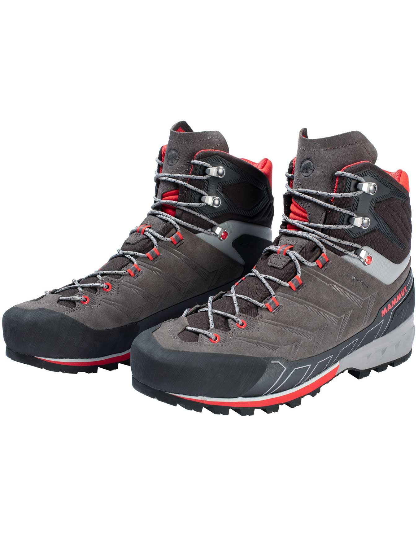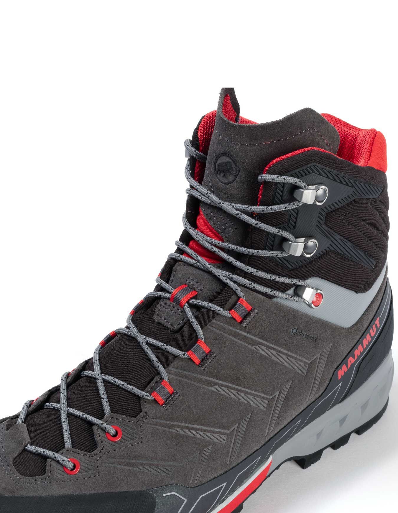 Conçues pour les terrains variés, les via ferrata et les expéditions en haute montagne, les chaussures de randonnée Kento Tour High GTX Dark Titanium/Dark Spicy de la marque Mammut s’adressent aux hommes.