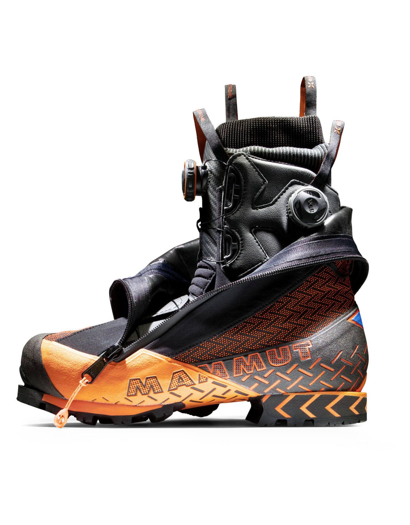 Chaussure d’alpinisme Mammut Nordwand 6000 High, isolante jusqu’à -35 °C, combinant semelle Vibram® Lite Base, chausson intérieur amovible et guêtres imperméables pour affronter les expéditions extrêmes.