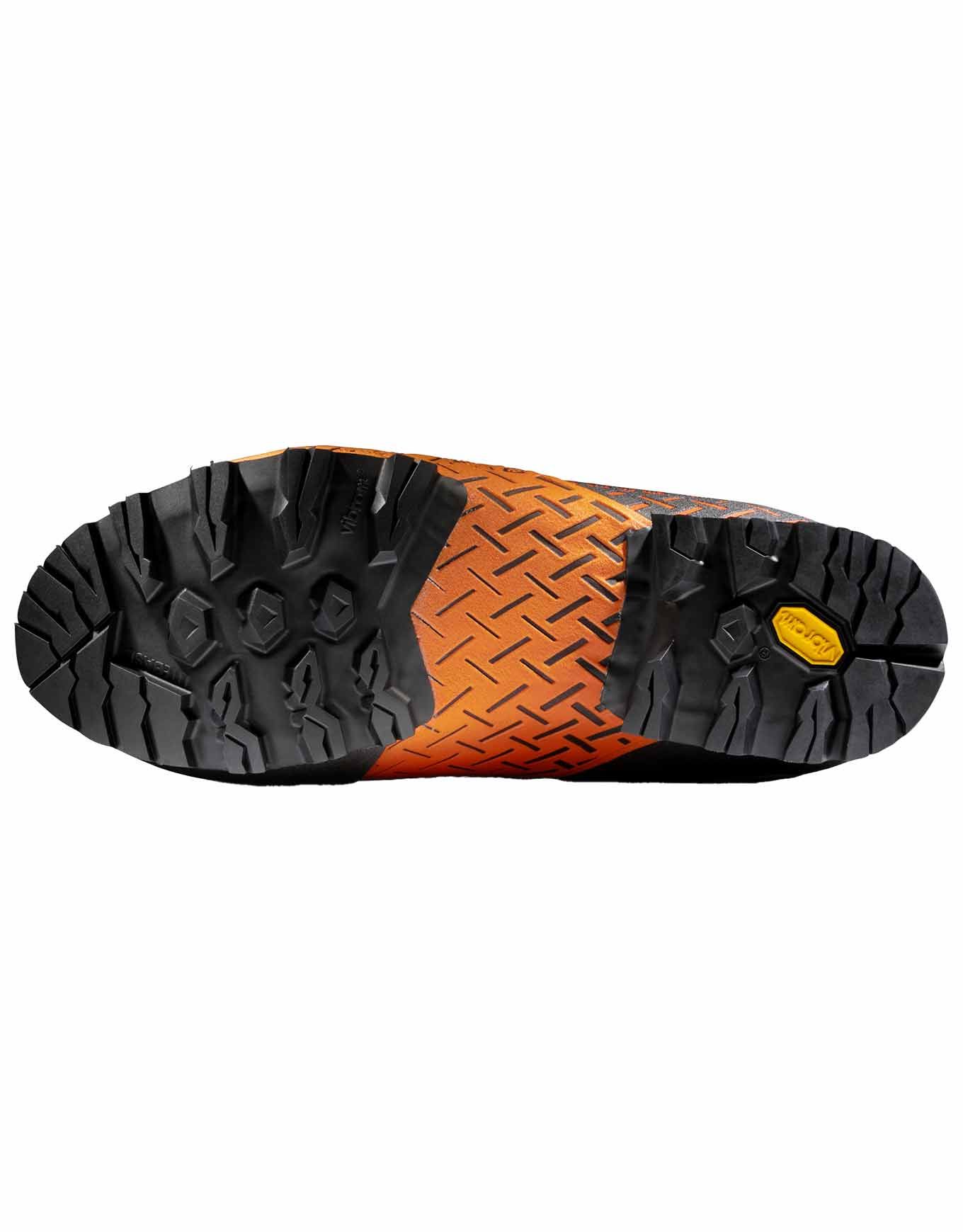 La semelle Vibram® Lite Base, positionnée à l’extérieur, combine robustesse et rigidité sans alourdir la chaussure ; une adhérence fiable sur tous les types de terrain est proposée, avec maintien de la compatibilité avec les crampons.