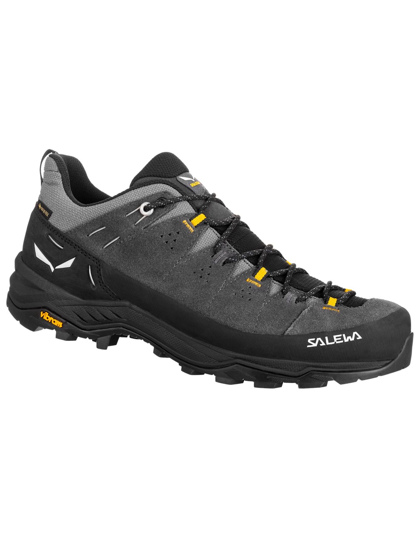 Chaussure d’approche homme Salewa Alp Trainer 2 GTX, membrane GORE-TEX, semelle Vibram Alpine Hiking, système 3F et lacing précis pour accroche, maintien et respirabilité en montagne.