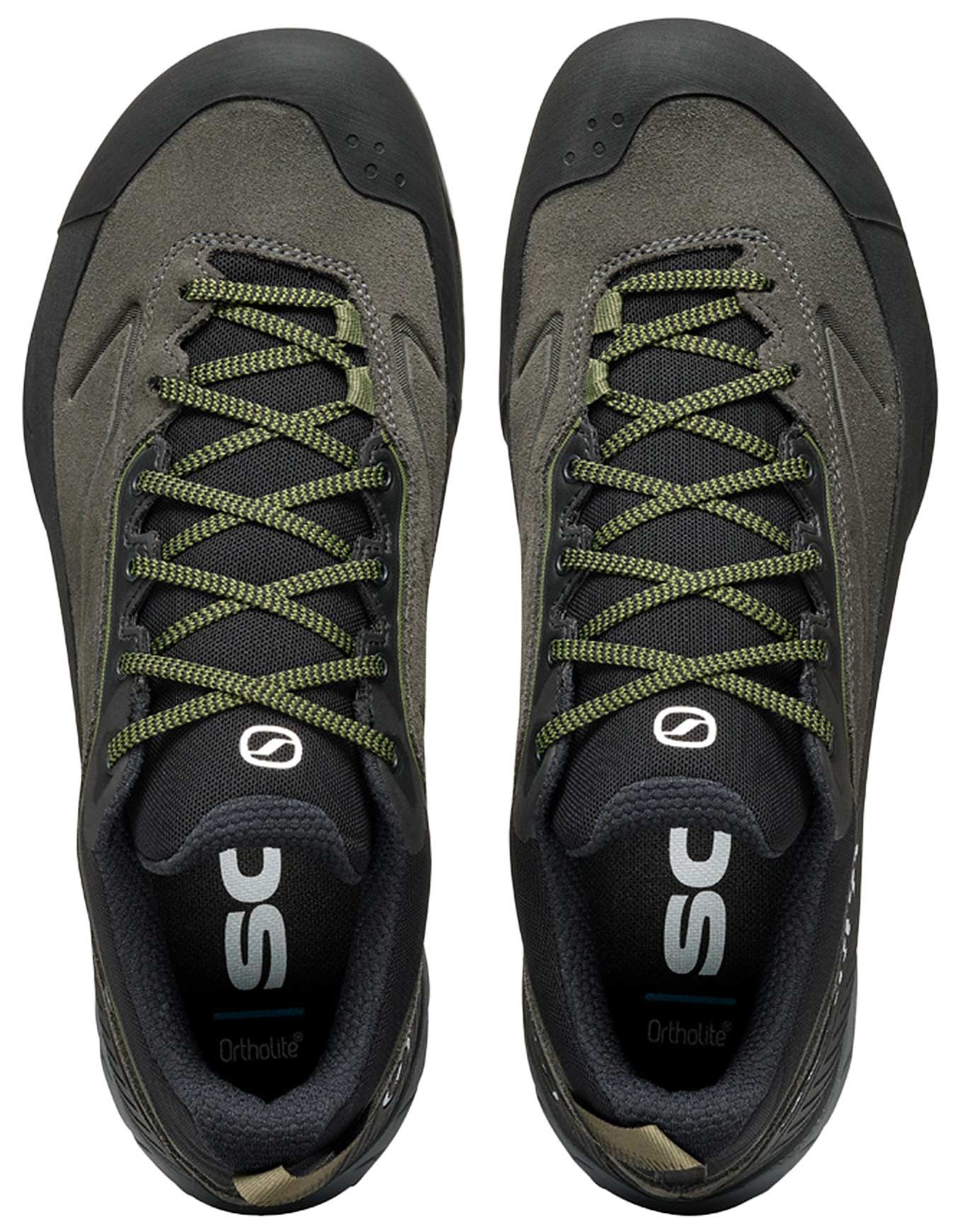 Chaussures d’approche et petites randonnées Scarpa Rapid XT GTX Shark Military pour homme, en cuir robuste avec membrane Gore-Tex® ePE imper-respirante, semelle Vibram MegaGrip adhérente, protection TPU et chaussant large.