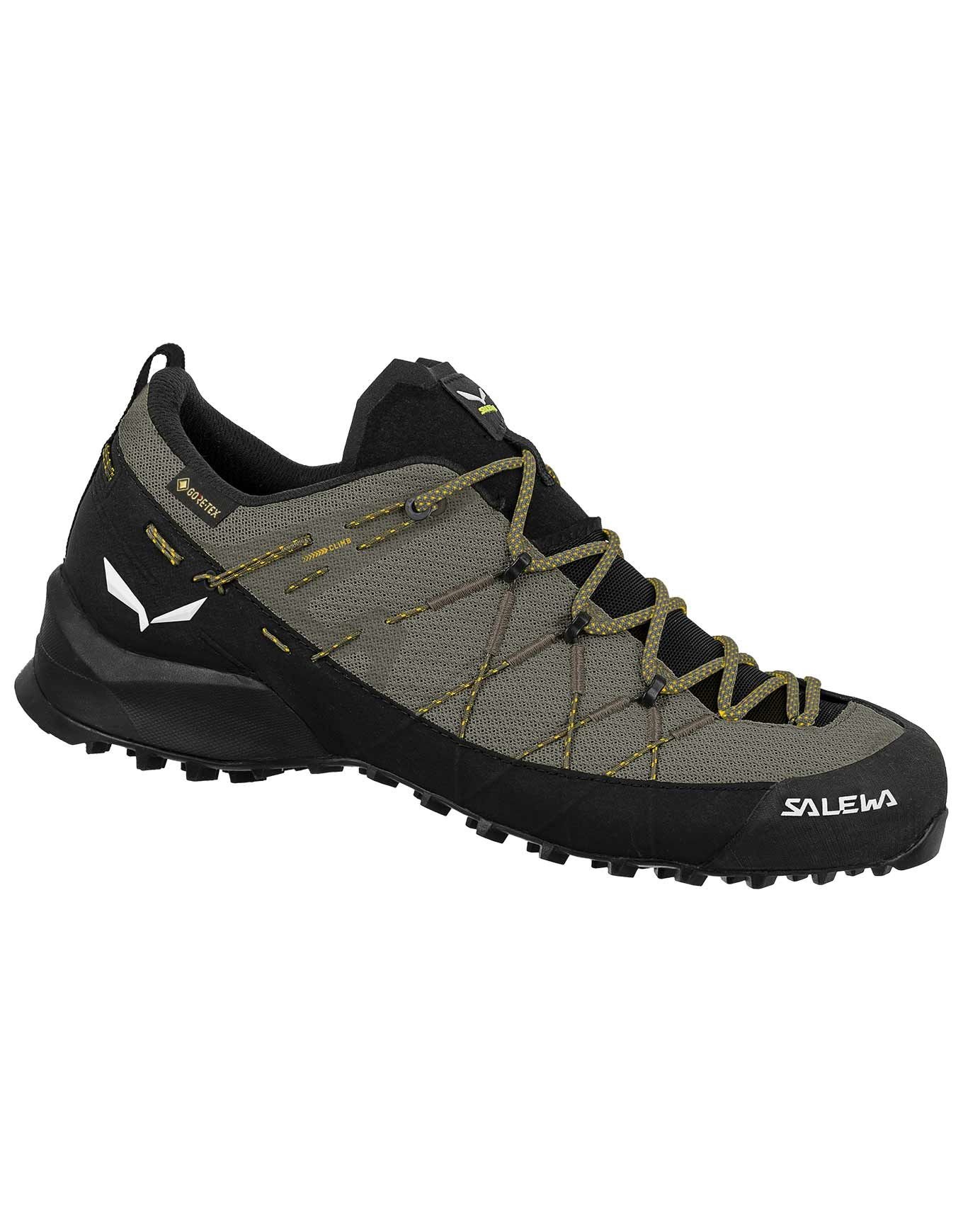 Chaussure d’approche homme Salewa Wildfire 2 GTX M, semelle Pomoca Speed MTN en composite Butilic pour adhérence sèche ou humide, membrane GORE-TEX respirante, système 3F et Exa Shell pour maintien précis, laçage Climbing Lacing et pare-pierre caoutchouc intégral.