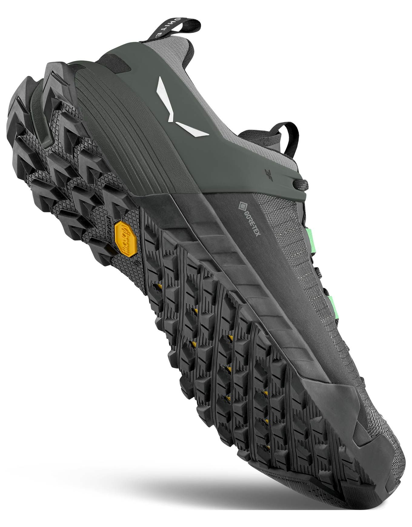 Chaussure d’approche Salewa Wildfire Nxt GTX Onyx/Irish Green pour homme, combinant confort de randonnée et précision d’approche avec tige Matryx, membrane GORE-TEX imperméable et semelle Vibram Megagrip.