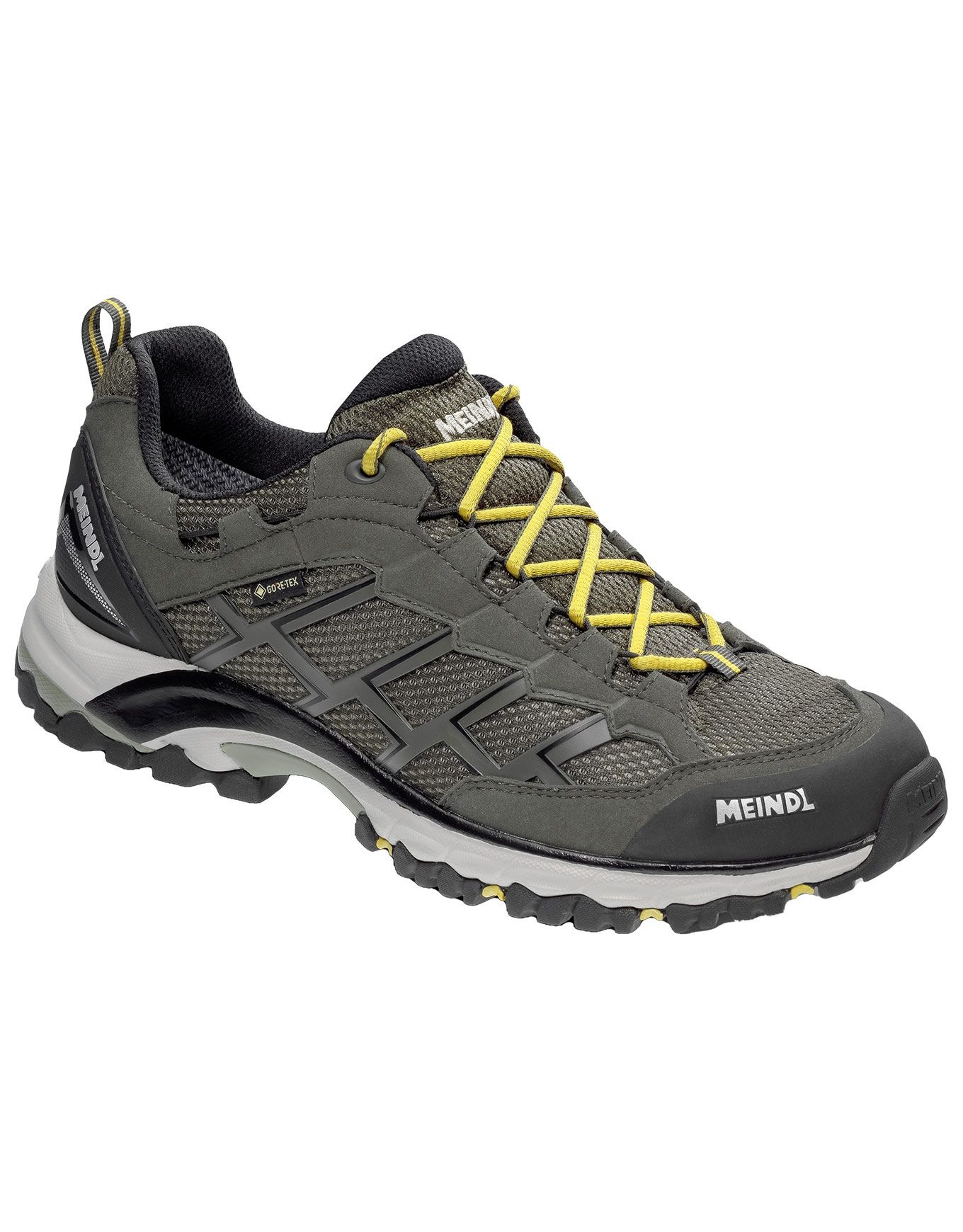 Chaussure de randonnée homme Meindl Caribe GTX Olive/Maïs, tige basse mesh/velours, membrane GORE-TEX, semelle Air-Active® respirante et Trail Activity Sport accrocheuse, légère et polyvalente pour sentiers secs ou humides.