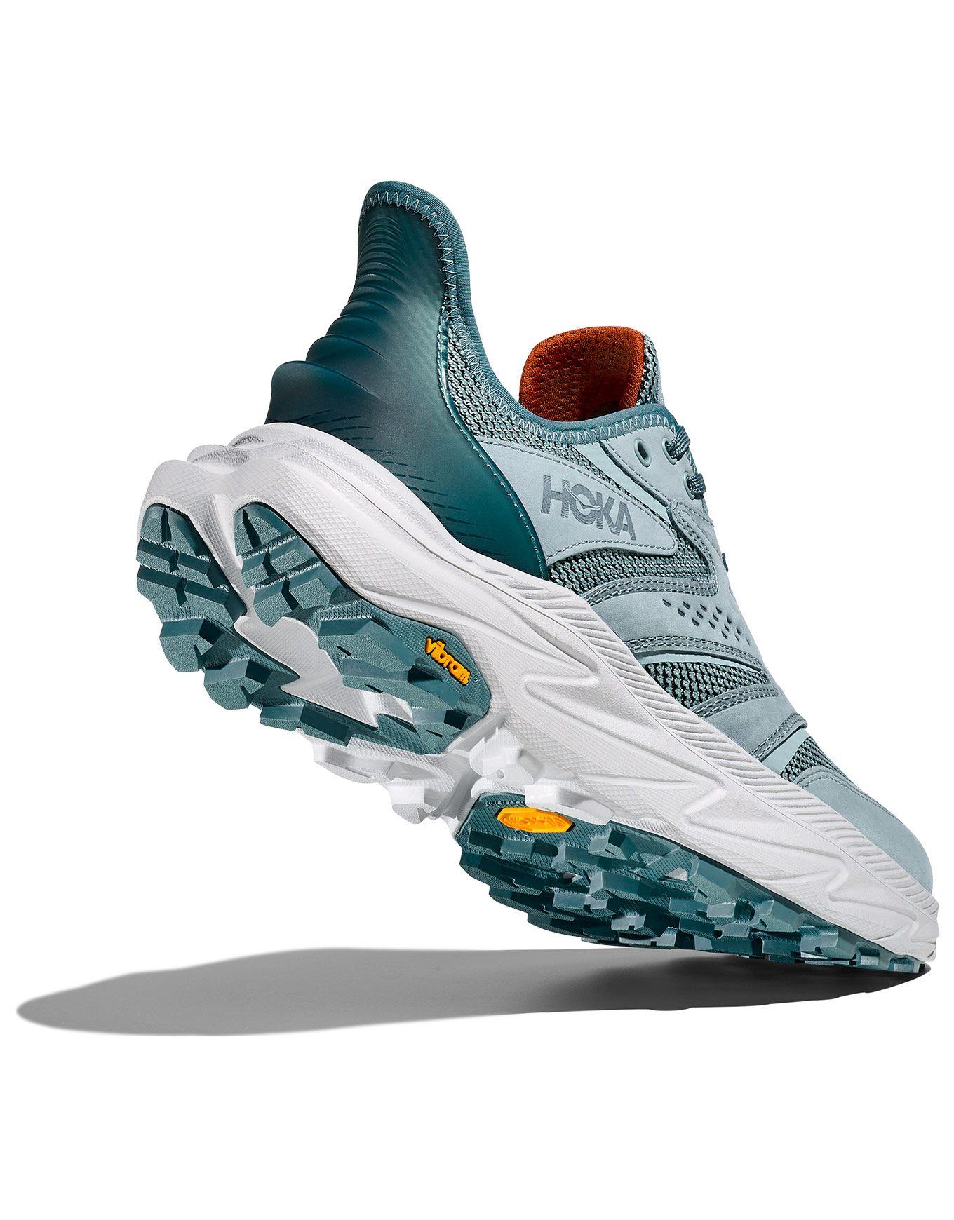 Chaussure de randonnée Hoka Anacapa 2 Freedom Druzy/Cosmic Grey pour homme, facile à enfiler, cuir nubuck écoresponsable, semelle EVA amortissante et Vibram Megagrip pour adhérence sur terrains glissants.