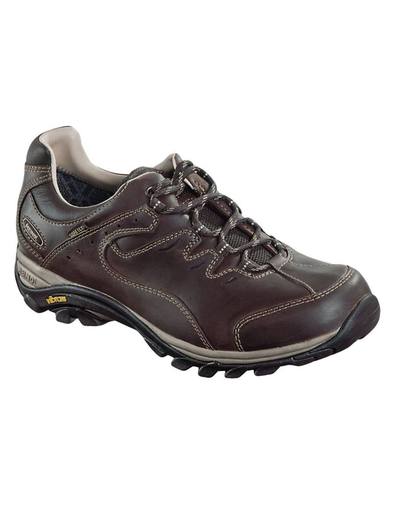 Chaussure Meindl Caracas GTX Dark Brown pour homme, en cuir Nubuck avec membrane GORE-TEX, semelle Vibram® Urban Walker, 920 g la paire. Confort et imperméabilité pour balades urbaines et petites randonnées.
