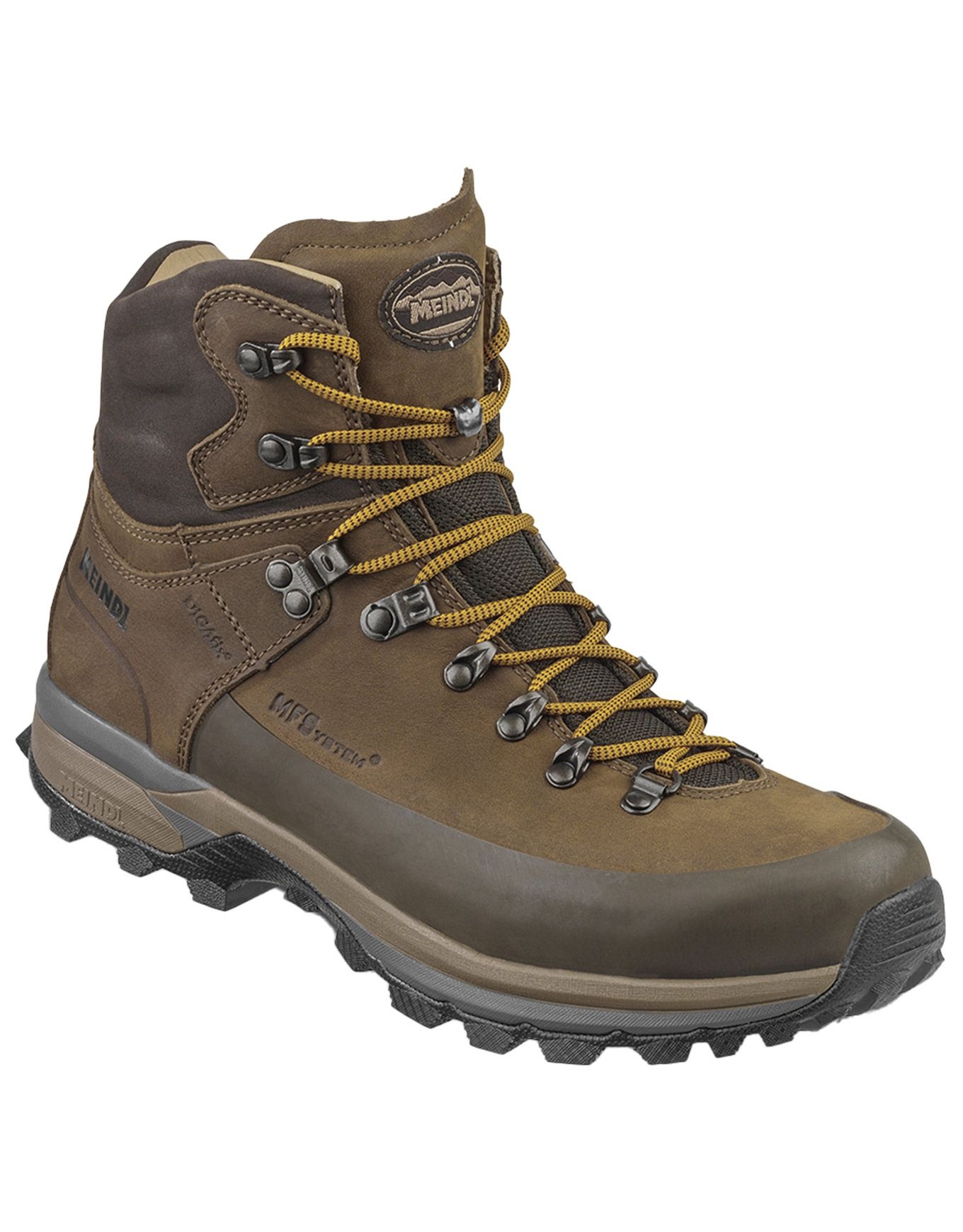 Chaussure de randonnée à tige moyenne Meindl La Gomera MFS Brown en cuir nubuck, équipée du système Memory Foam pour un ajustement personnalisé, de la semelle Vibram Cleats-Grip pour l’adhérence et de la doublure Air-Active® pour le maintien au sec.