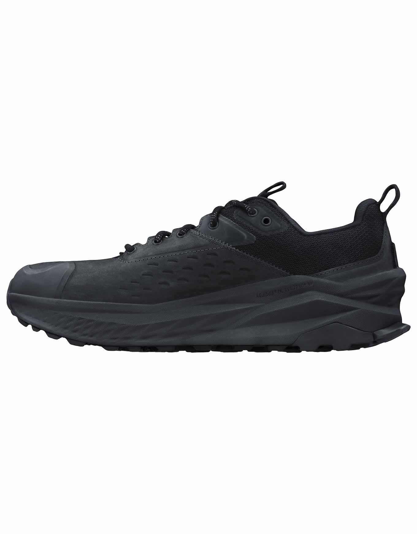 Chaussure de randonnée homme Altra Olympus 6 Hike Low Gtx Black, drop 0 mm et silhouette Original Footshape Fit pour foulée naturelle et espace aux orteils. Membrane GORE-TEX, tige basse, semelle Vibram Megagrip et mousse EVA : pieds au secs, adhérence fiable et amorti maximal sur tout terrain.