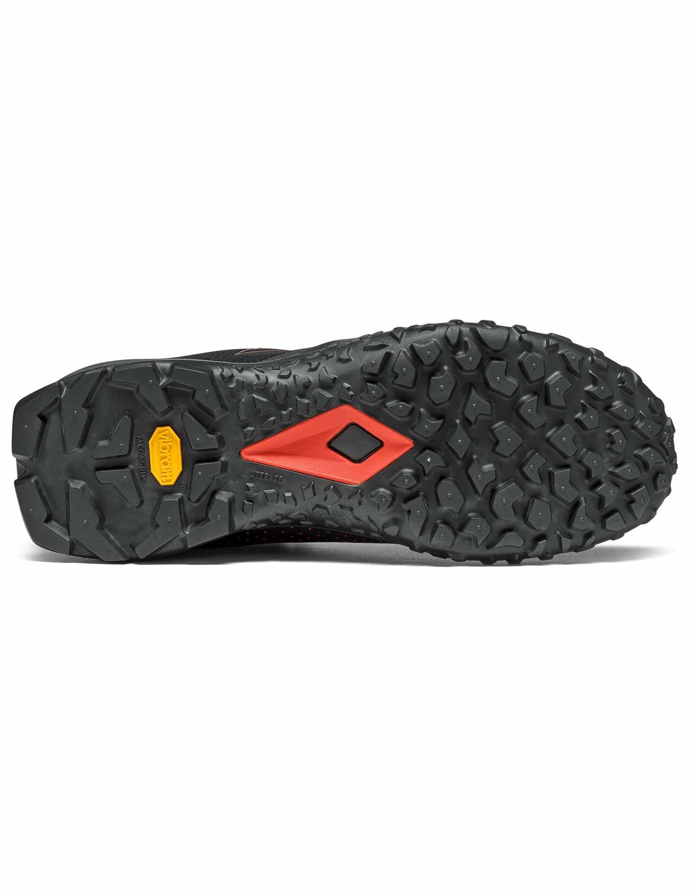 Que ce soit pour marcher ou courir, ces chaussures sont équipées d’une semelle Vibram® Litebase™ Megagrip™ qui procure une adhérence fiable sur surfaces sèches comme mouillées, accompagnée d’un freinage performant lors des descentes rapides. La stabilité est renforcée par un talon ultra-large, alors que les chocs sont absorbés par la semelle intermédiaire en EVA. Deux ailerons viennent augmenter la surface de contact au niveau du talon afin d’optimiser le freinage, y compris dans les descentes techniques.
