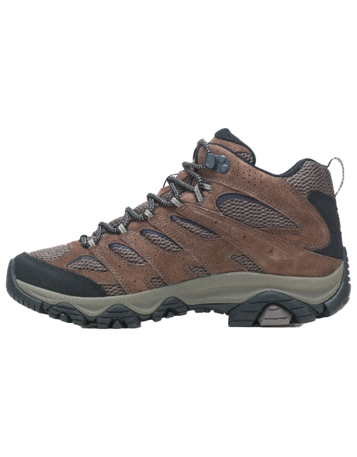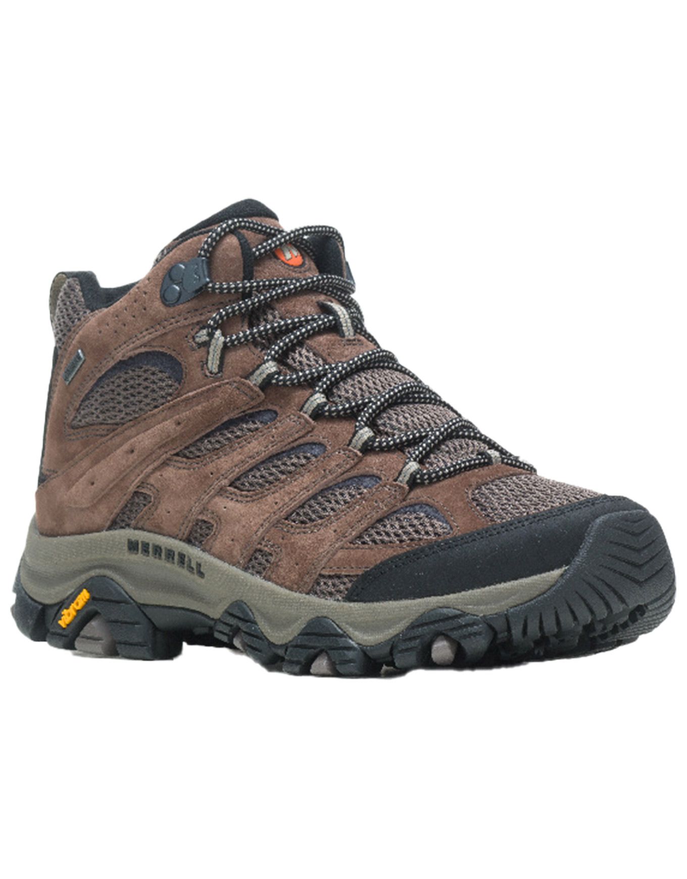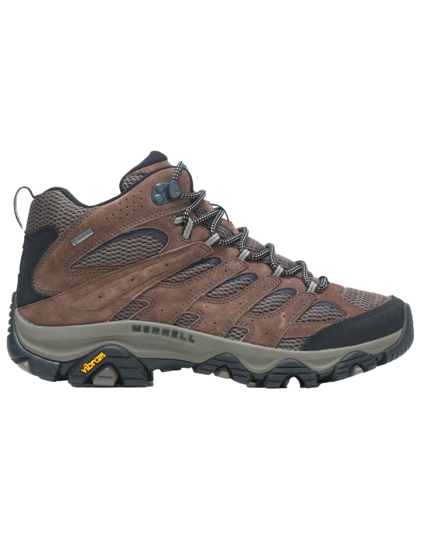 La chaussure de randonnée Merrell Moab 3 Mid GTX Bracken pour homme combine membrane GORE-TEX imper-respirante, tige mi-haute, semelle intérieure Kinetic Fit™ ADVANCED et semelle Vibram® partiellement recyclée pour légèreté, amorti et adhérence optimale en terrain technique.