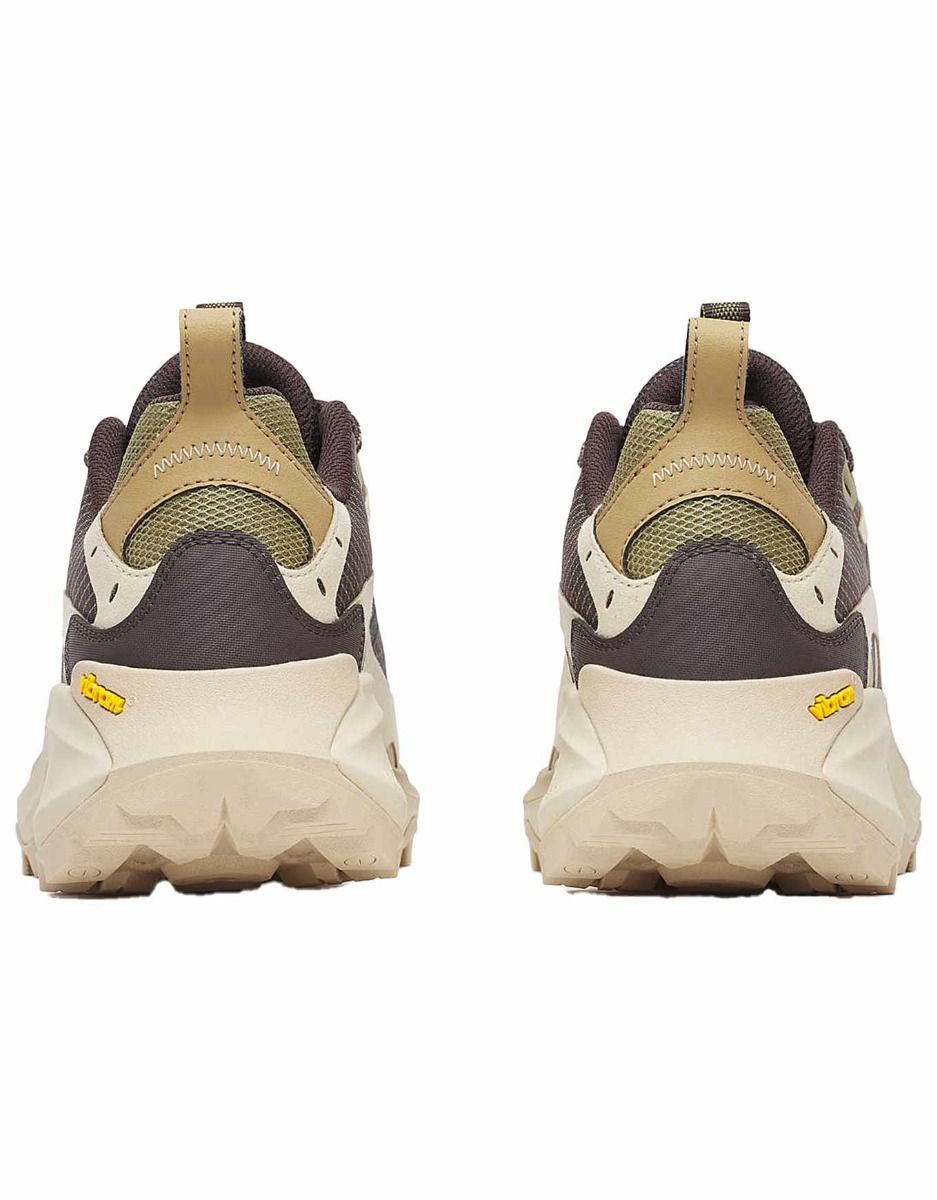 Une adhérence remarquable est délivrée par la semelle extérieure Vibram® TC5+, développée exclusivement pour Merrell. L’évacuation des débris à chaque appui est assurée par les crampons de traction Vibram®, offrant grip et propulsion aussi bien sur sentiers secs que mouillés.