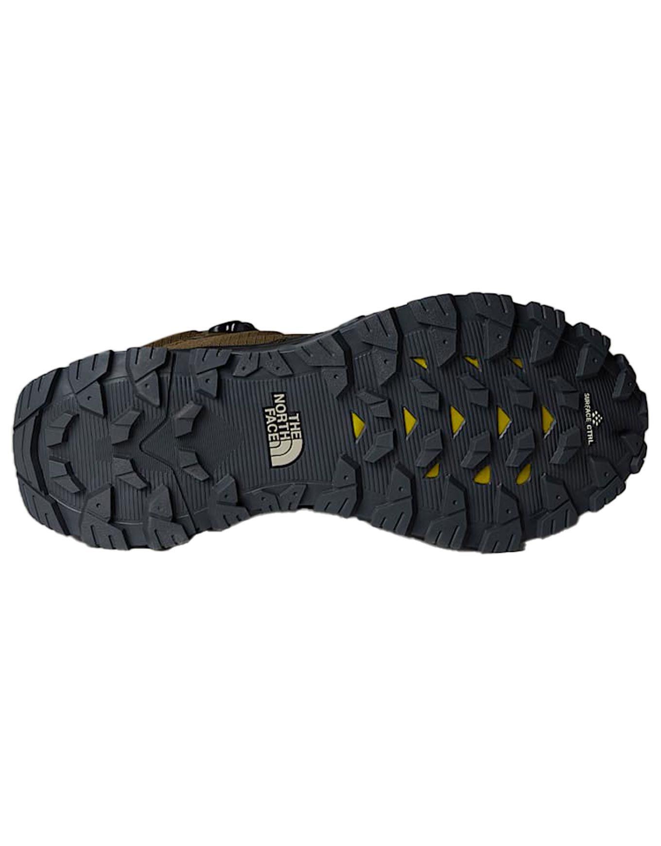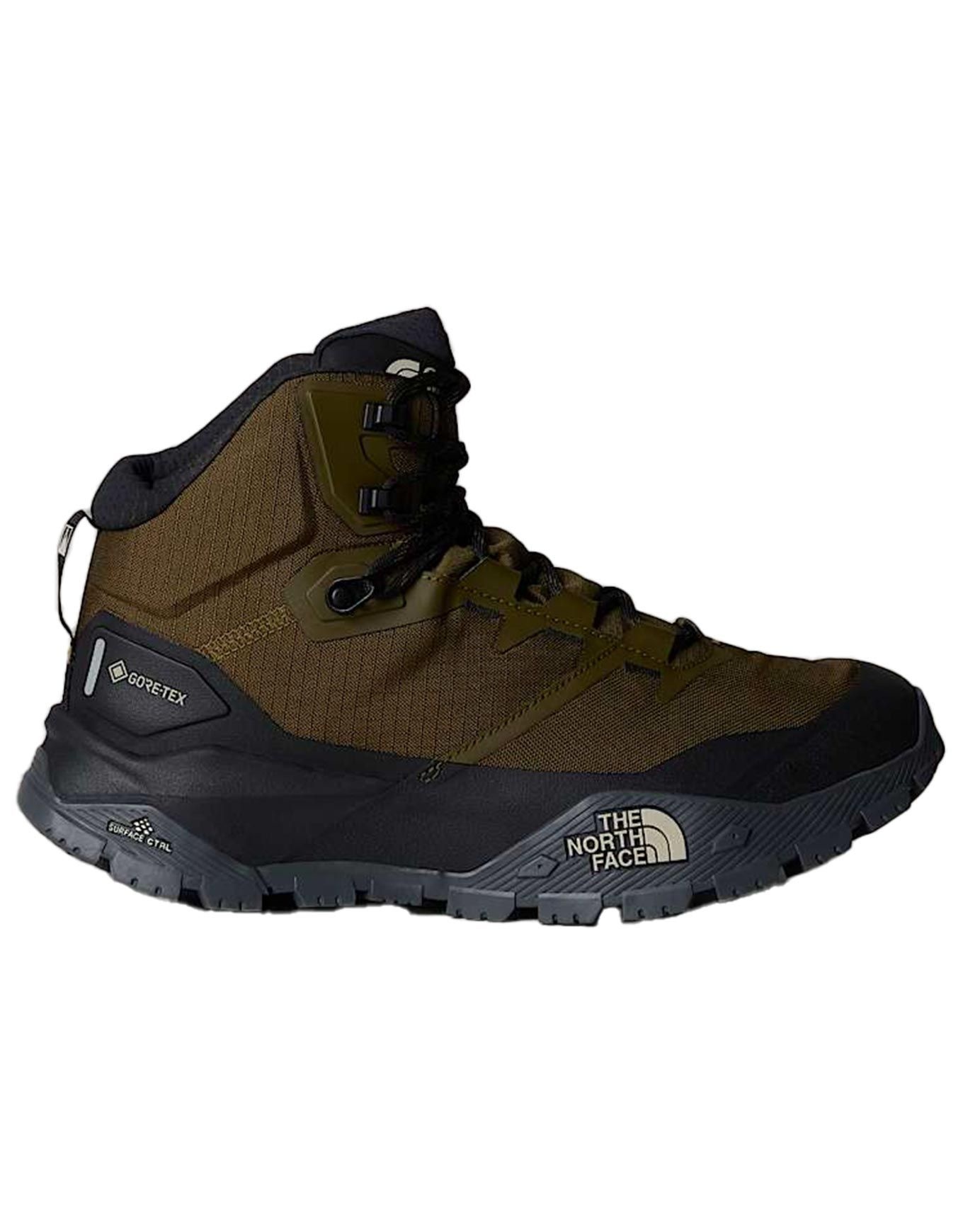 The North Face Offtrail Hike Mid GTX sont des chaussures montantes de randonnée homme sécurisant la cheville avec une tige Cordura, membrane GORE-TEX imper-respirante et semelle Surface CTRL 5 mm pour adhérence fiable sur sentiers techniques.