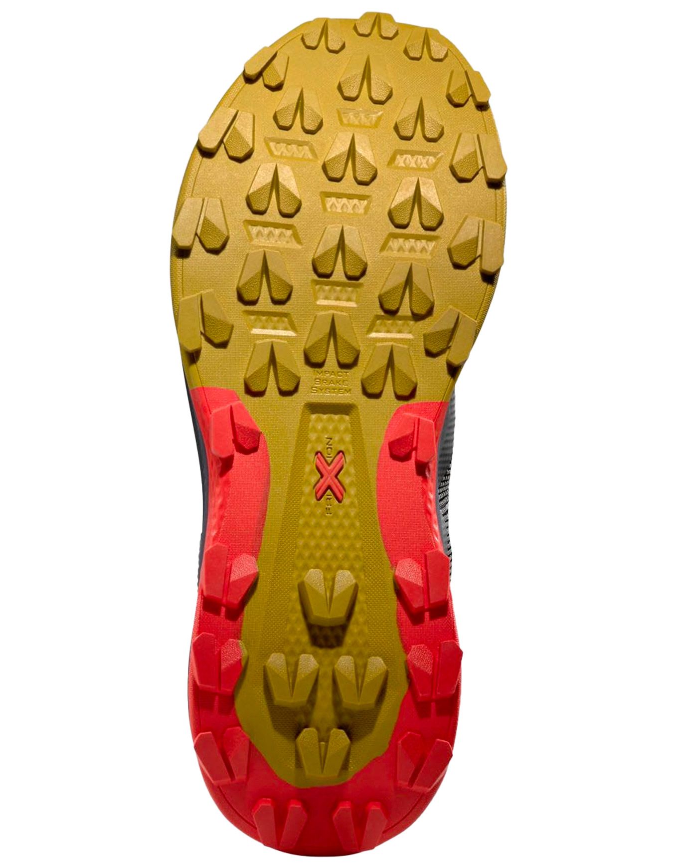 La semelle extérieure FriXion Red assure une adhérence fiable sur des terrains variés. Un talon ergonomique renforcé et une semelle intermédiaire offrant un amorti efficace complètent l’équipement.