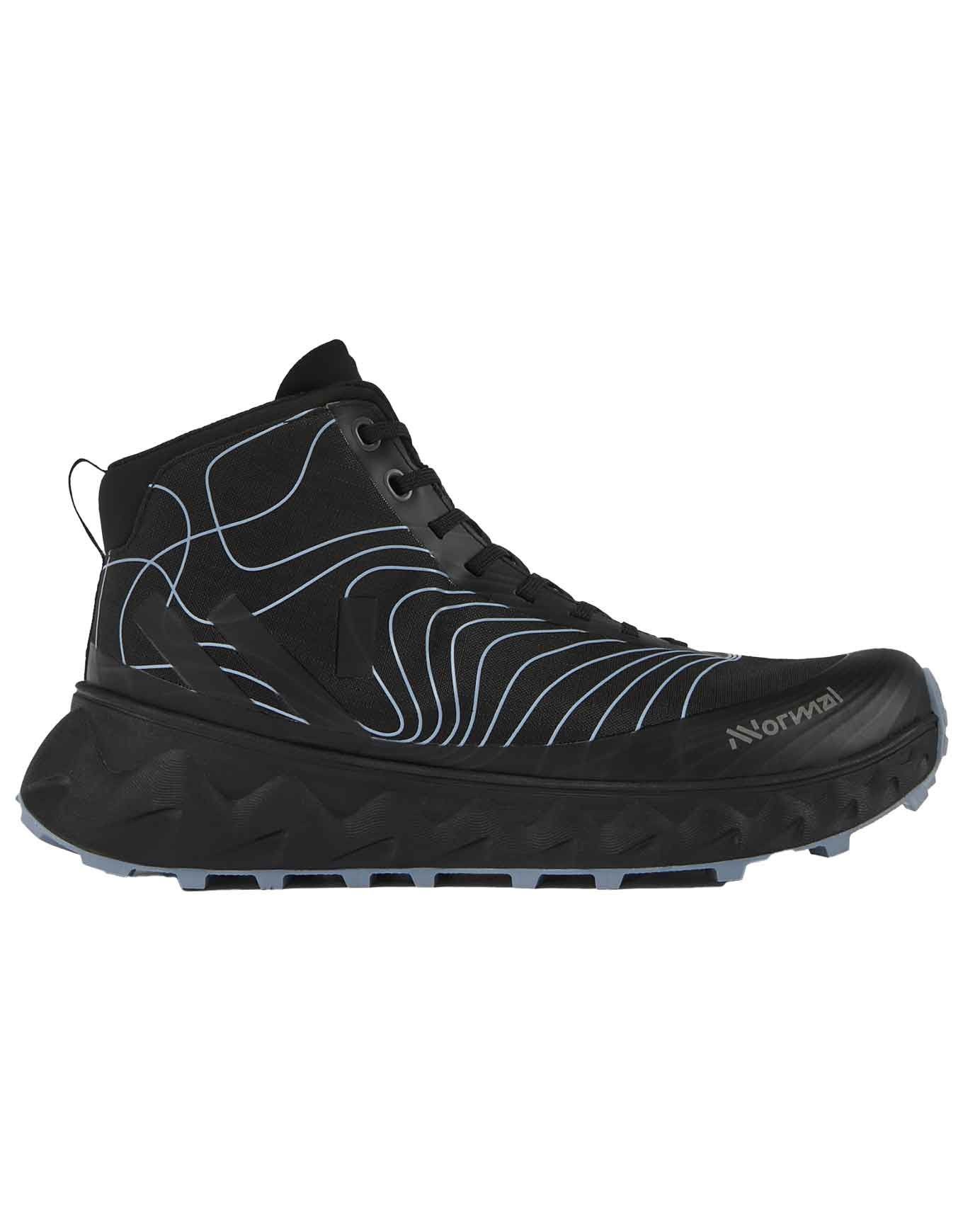 Chaussures de randonnée NNormal Tomir Boot WP imperméables, semelle Vibram Megagrip 5 mm, tige mi-haute en polyester ripstop déperlant, membrane Sympatex 40 000 mm, laçage asymétrique, amorti EVA, certifiée climat-neutre.