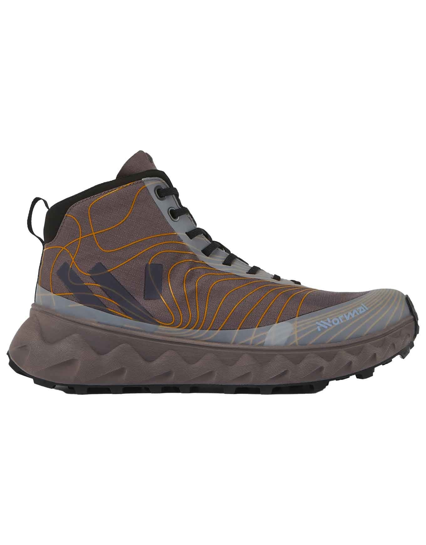 Chaussures de randonnée NNormal Tomir Boot WP imperméables, semelle Vibram Megagrip 5 mm, tige mi-haute en polyester ripstop déperlant, membrane Sympatex 40 000 mm, laçage asymétrique, amorti EVA, certifiée climat-neutre.