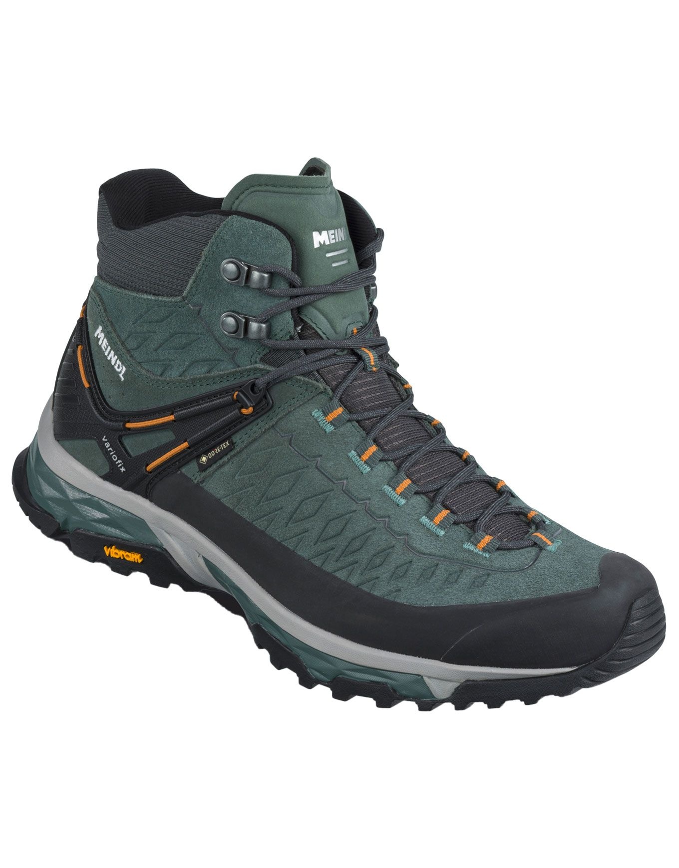 Chaussures de randonnée homme Meindl Top Trail Mid GTX en cuir suède et mesh, membrane GORE-TEX imperméable, semelle Vibram Hiking Grip adhérente, maintien de cheville renforcé et laçage Variofix.