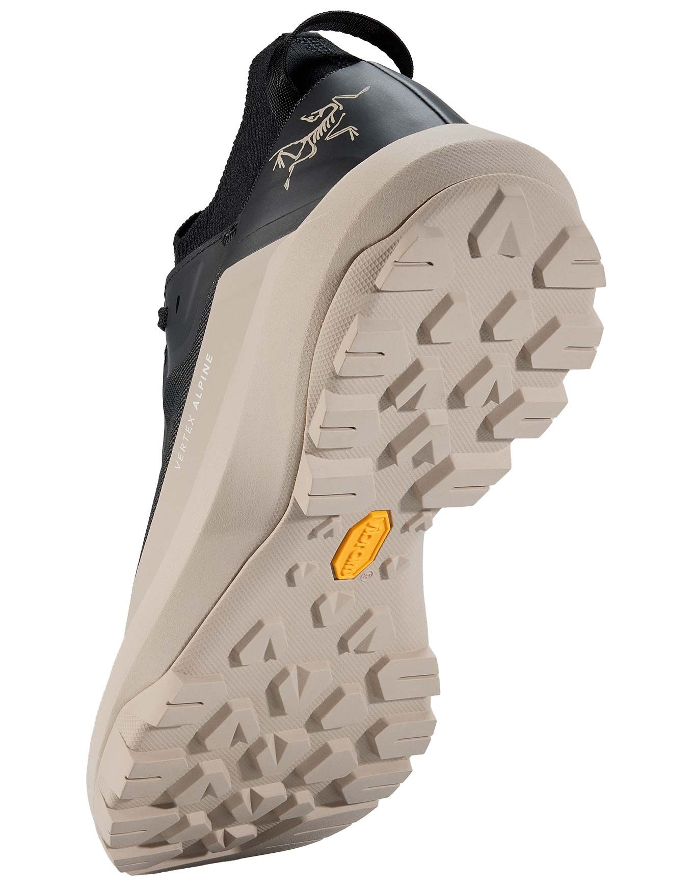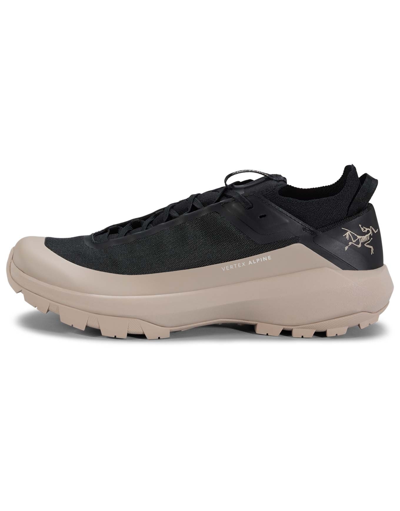 Chaussures d’approche Arc’teryx Vertex Alpine Black/Black pour homme, légères et stabilisantes avec semelle Vibram® XS Flash 2 pour adhérence sur terrain accidenté, tige TPU durable et col tricot anti-débris.