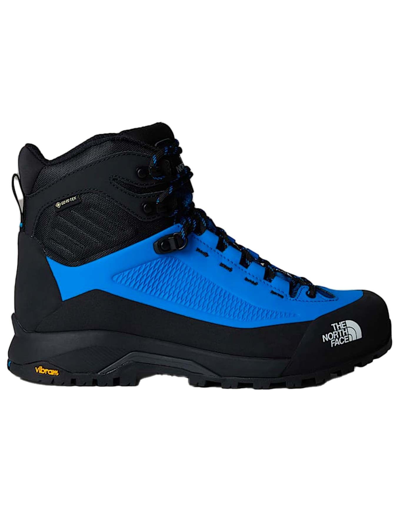 Chaussures de trekking homme The North Face Verto Alpine Mid GTX Hero Blue/Black, membrane GORE-TEX® imper-respirante, semelle Vibram XS Trek 5 mm pour accroche fiable, tige mid cuir rigide avec soutien cheville et pare-pierre Skycore.