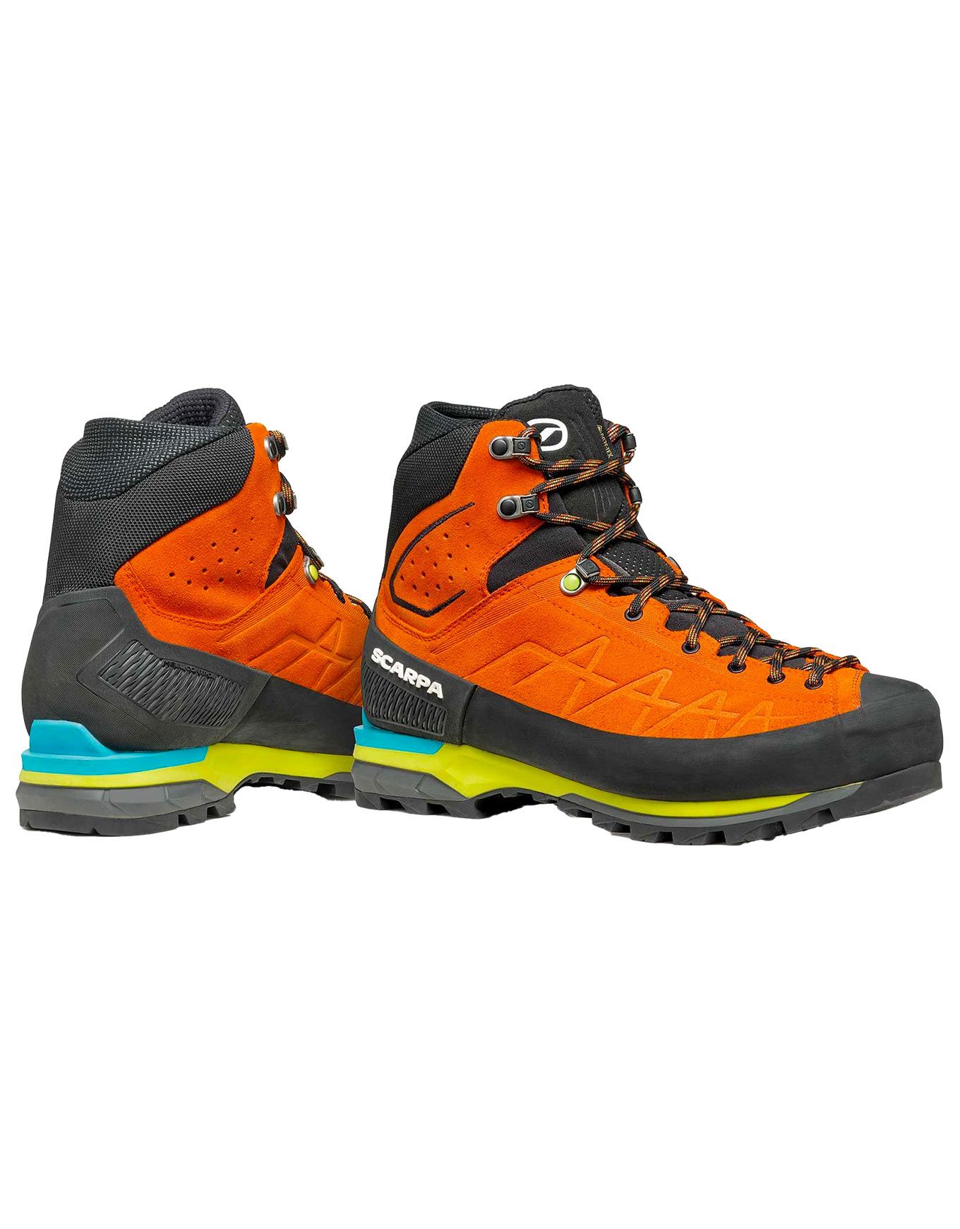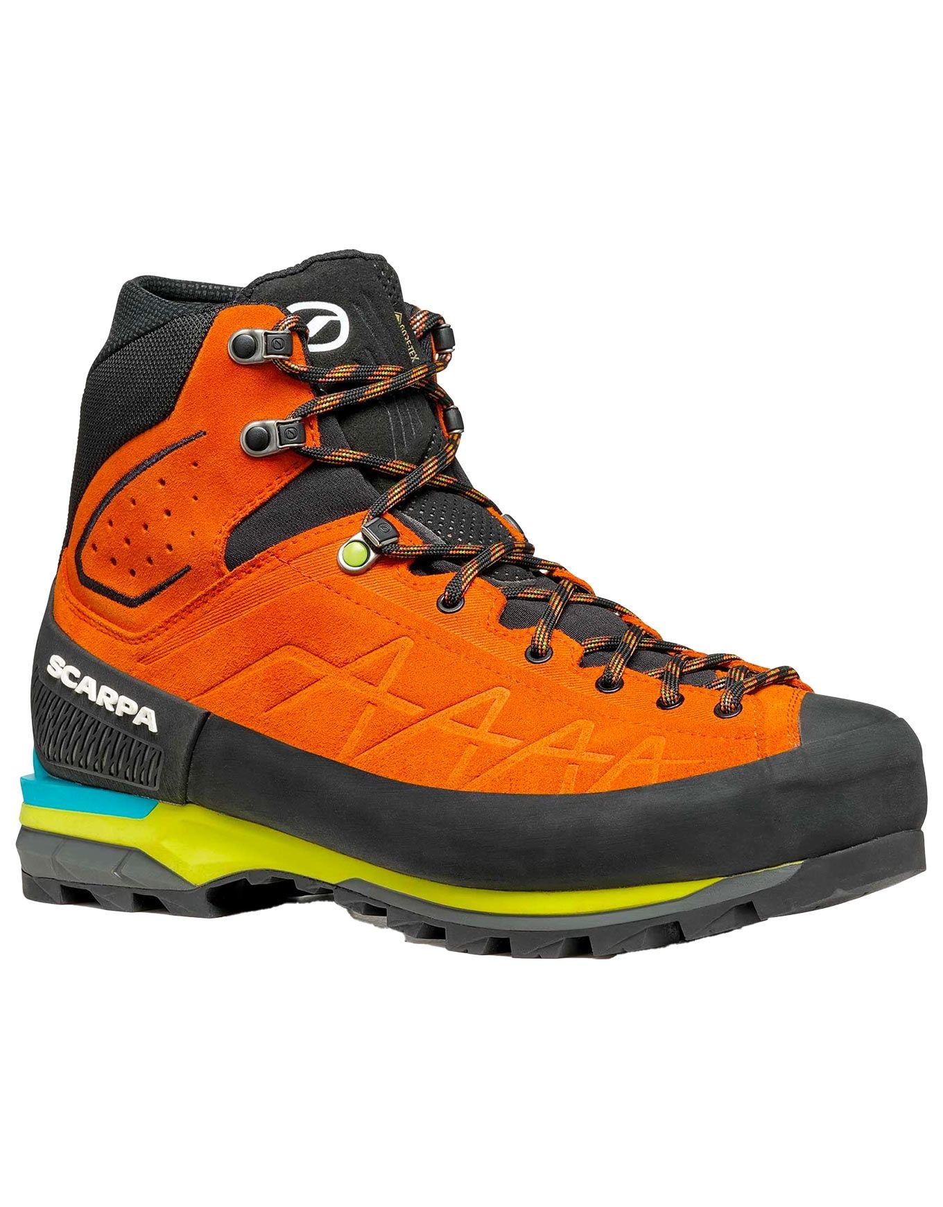 Chaussure de randonnée et d’alpinisme Scarpa Zodiac Tech GTX Tonic Black, conçue pour guides et sauveteurs, avec membrane GORE-TEX, semelle Vibram®, cuir hydrophuge Nepal Perwanger et système BAS pour respirabilité, stabilité et adhérence sur terrain mixte.