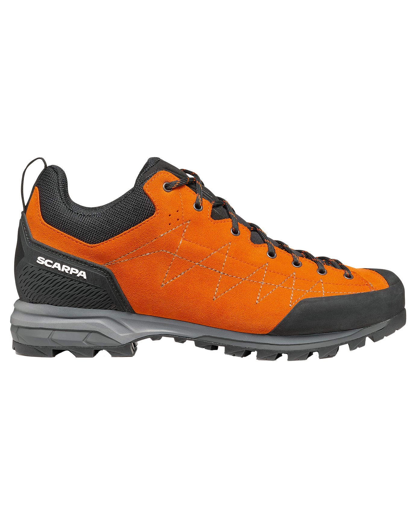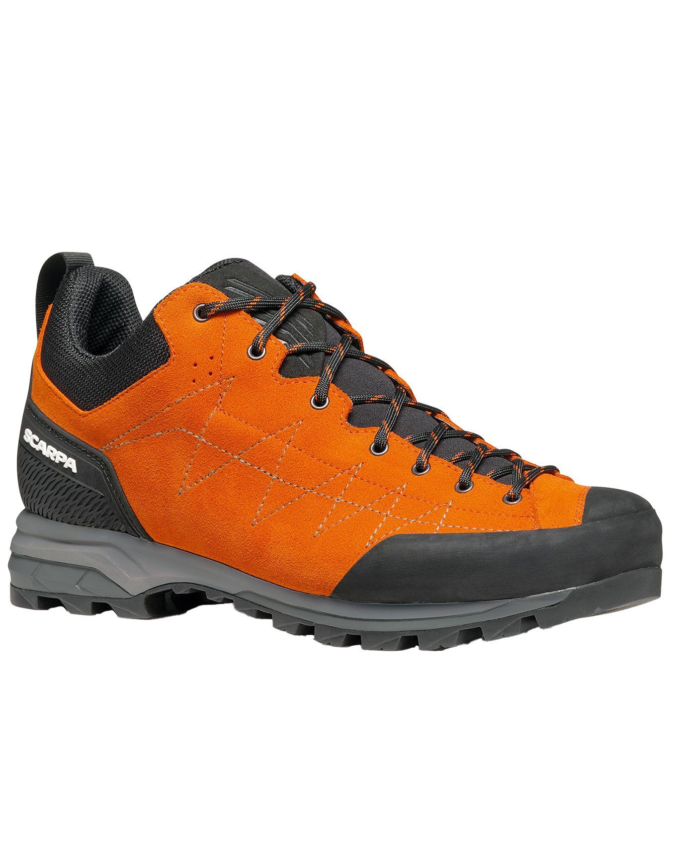Chaussure de randonnée homme Scarpa Zodiac Tonic Black, conçue pour les approches techniques : stabilité en torsion, traction optimale et adaptation au terrain grâce au système BAS. Membrane GORE-TEX, cuir Perwanger imperméable, semelle Vibram et tige 37.5 pour le confort thermique.
