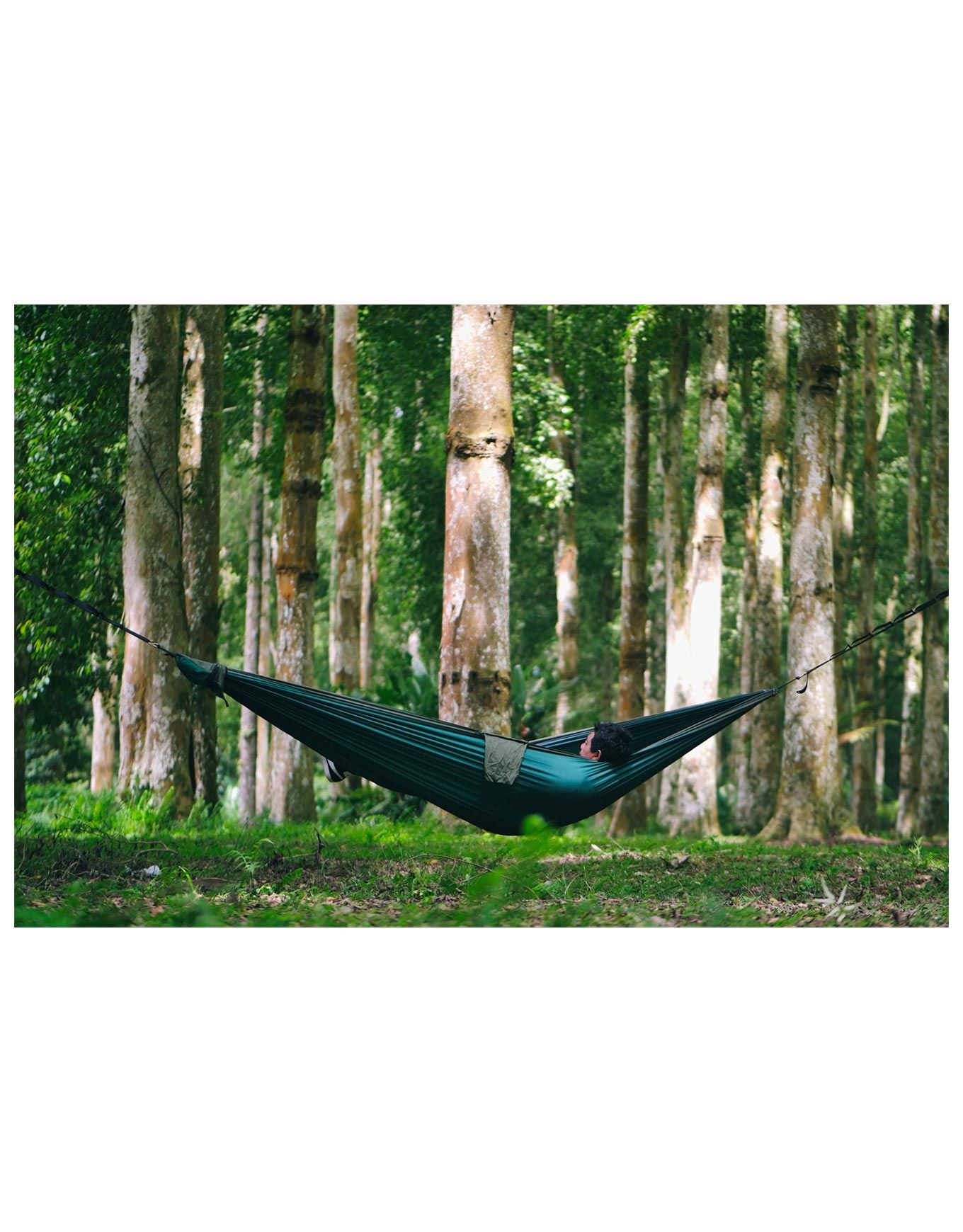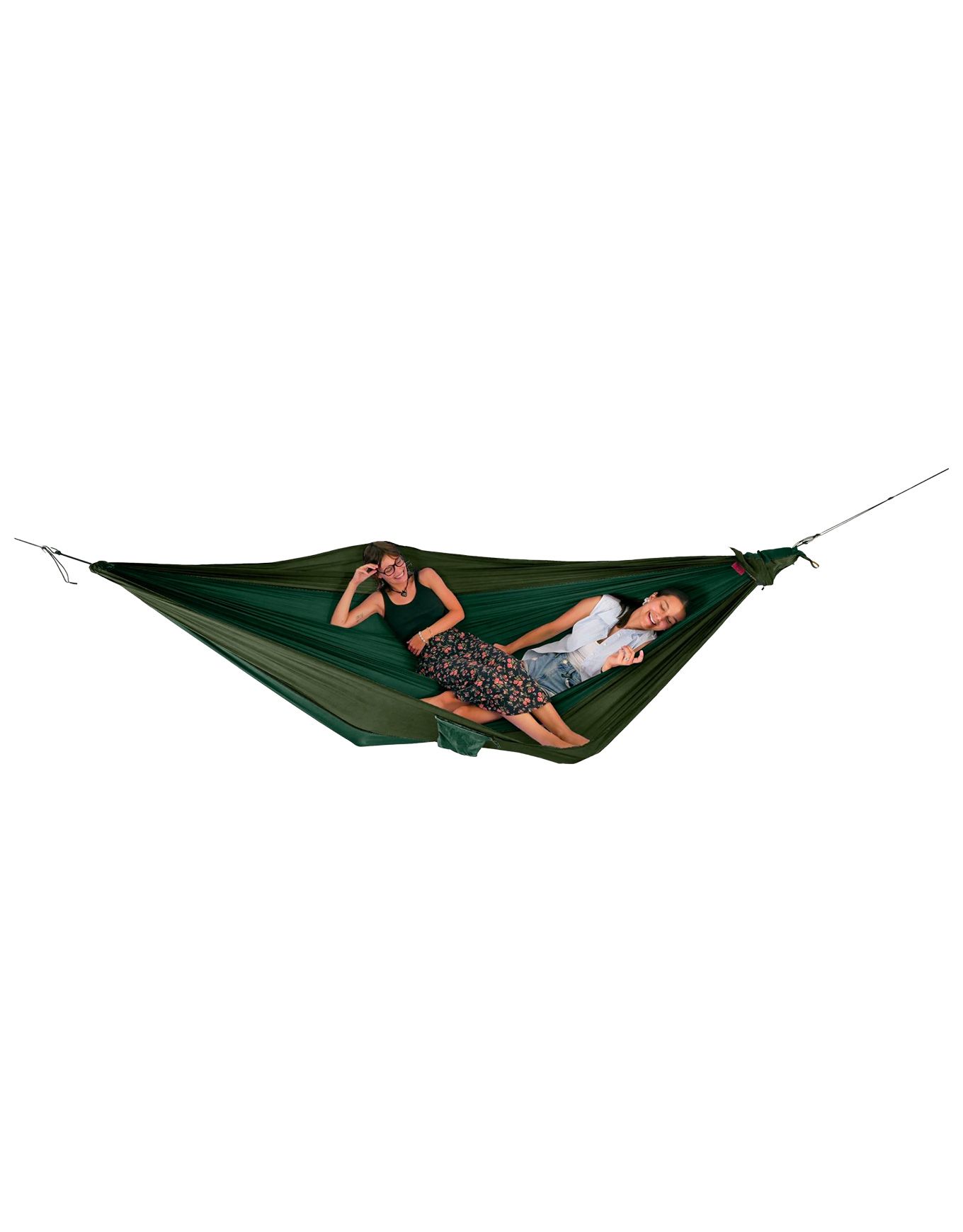 Hamac King Size Dark Green Ticket To The Moon, compact 700 g et toile parachute, offre un confort fiable pour deux en camping, trekking ou sieste.