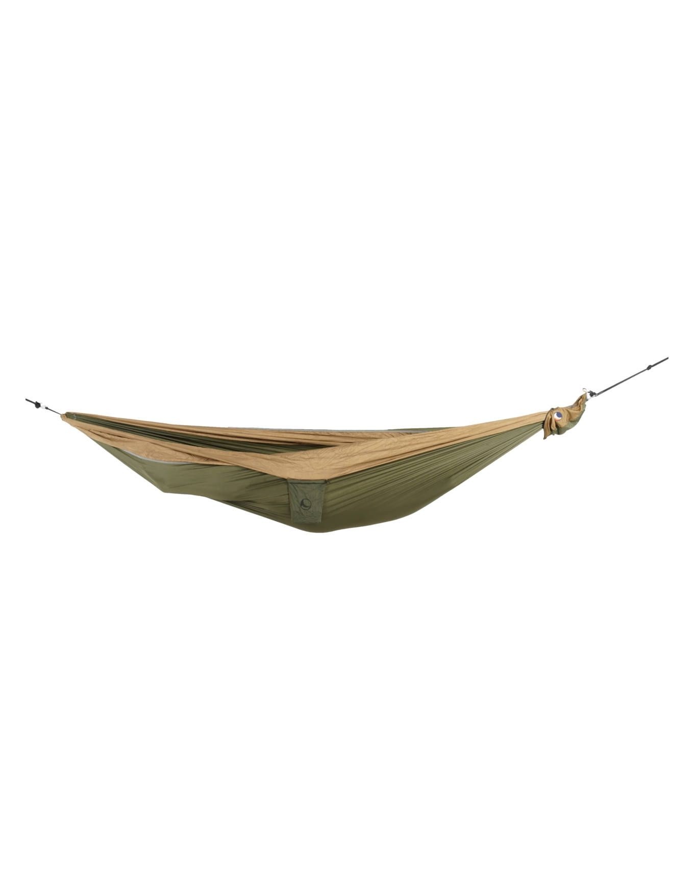 L’Original Hammock Army Green / Brown, créé en 1996 par Ticket To The Moon, constitue un équipement de bivouac et de voyage à la fois ultra-léger et indispensable. Grâce à sa toile en nylon parachute — extensible et perméable à l’air — un confort d’exception est garanti quelles que soient les conditions, des régions tempérées aux milieux les plus hostiles.