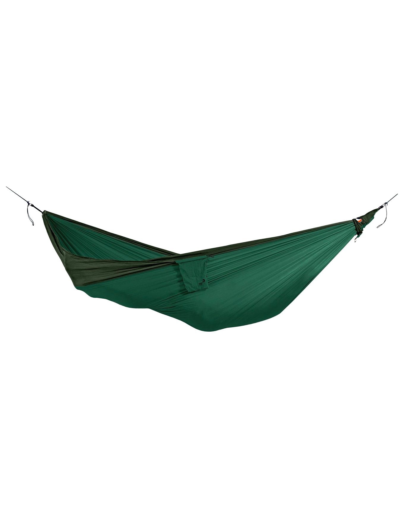 L’Original Hammock Dark Green / Army Green de Ticket To The Moon est un hamac de 600 g ultra-léger, rapide à installer, apprécié des campeurs et voyageurs pour son confort en bivouac ou en sieste grâce à sa toile parachute respirante et extensible.