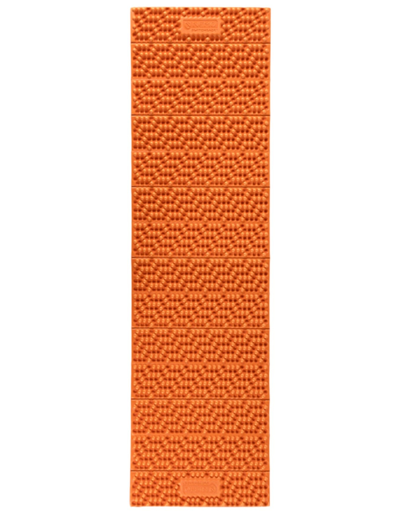Matelas mousse ultraléger Nemo Switchback Insulated Sunset Orange, 2,3 cm d’épaisseur pour 300 g, compact 51 x 13 cm plié, isolation au sol jusqu’à -1 °C par mousse cellules fermées et revêtement métallisé.