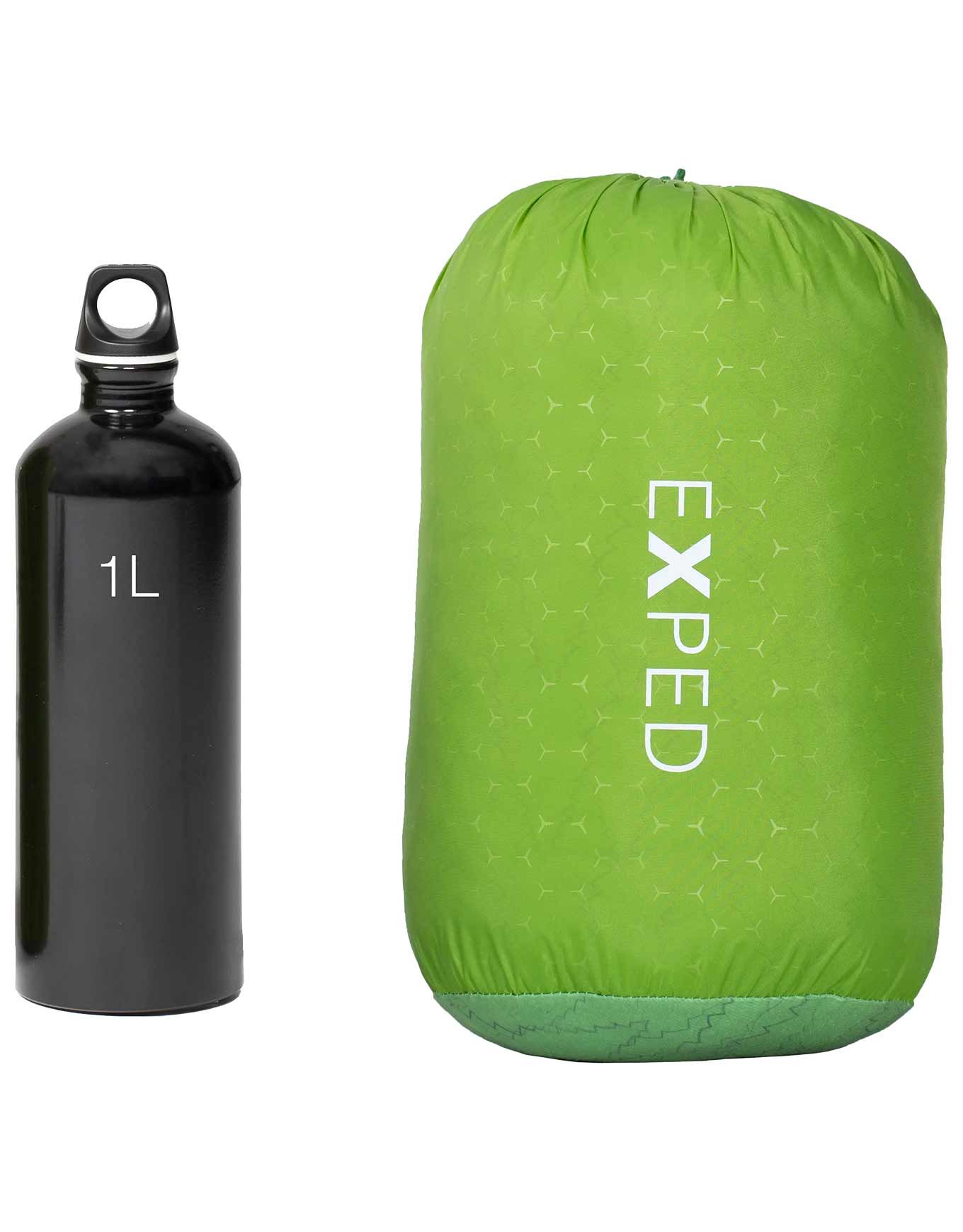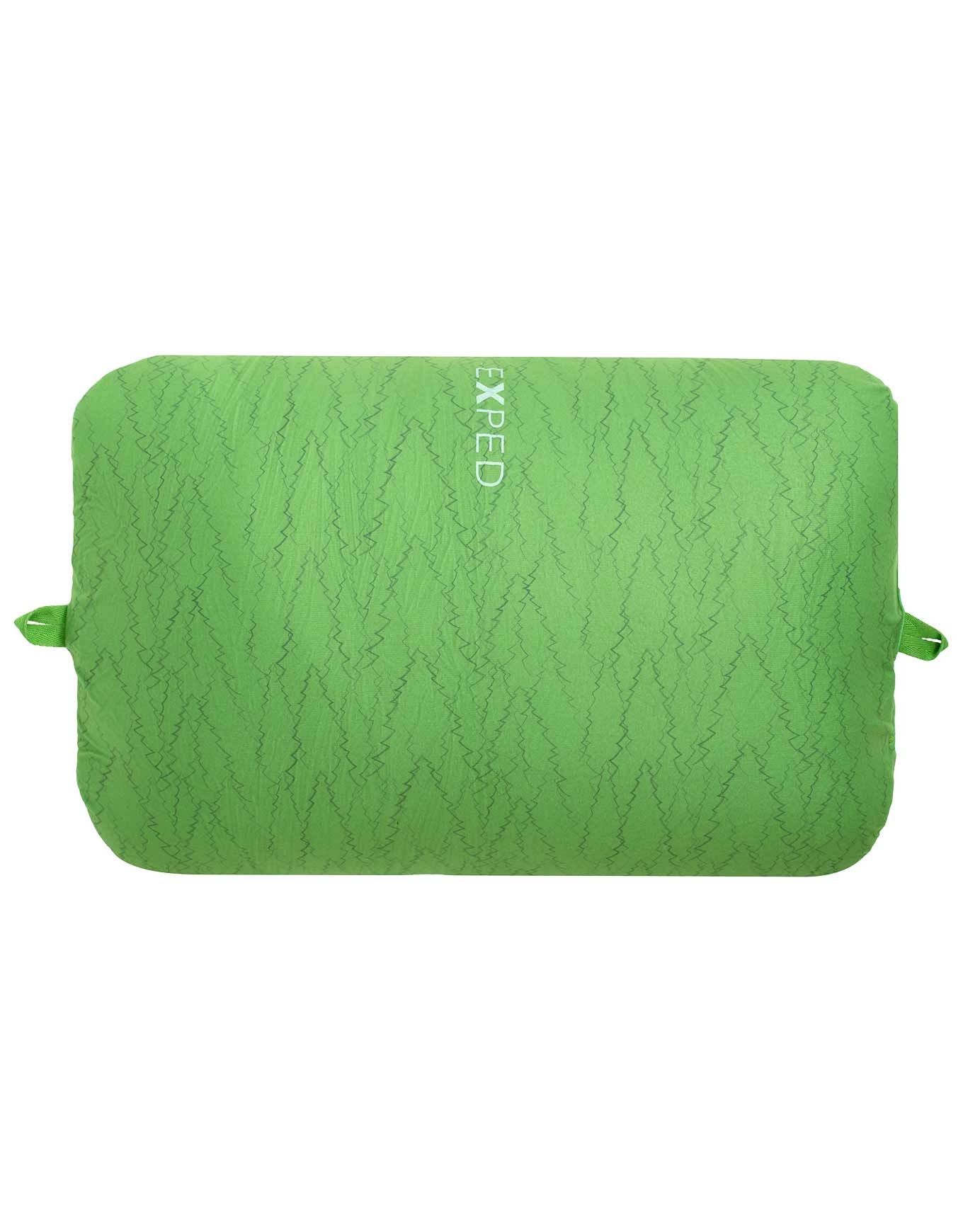 L’oreiller de camping/bivouac gonflable Exped Trailhead Pillow Lichen Forest combine mousse PU recyclée et polyester brossé doux pour un confort optimal sous tente.