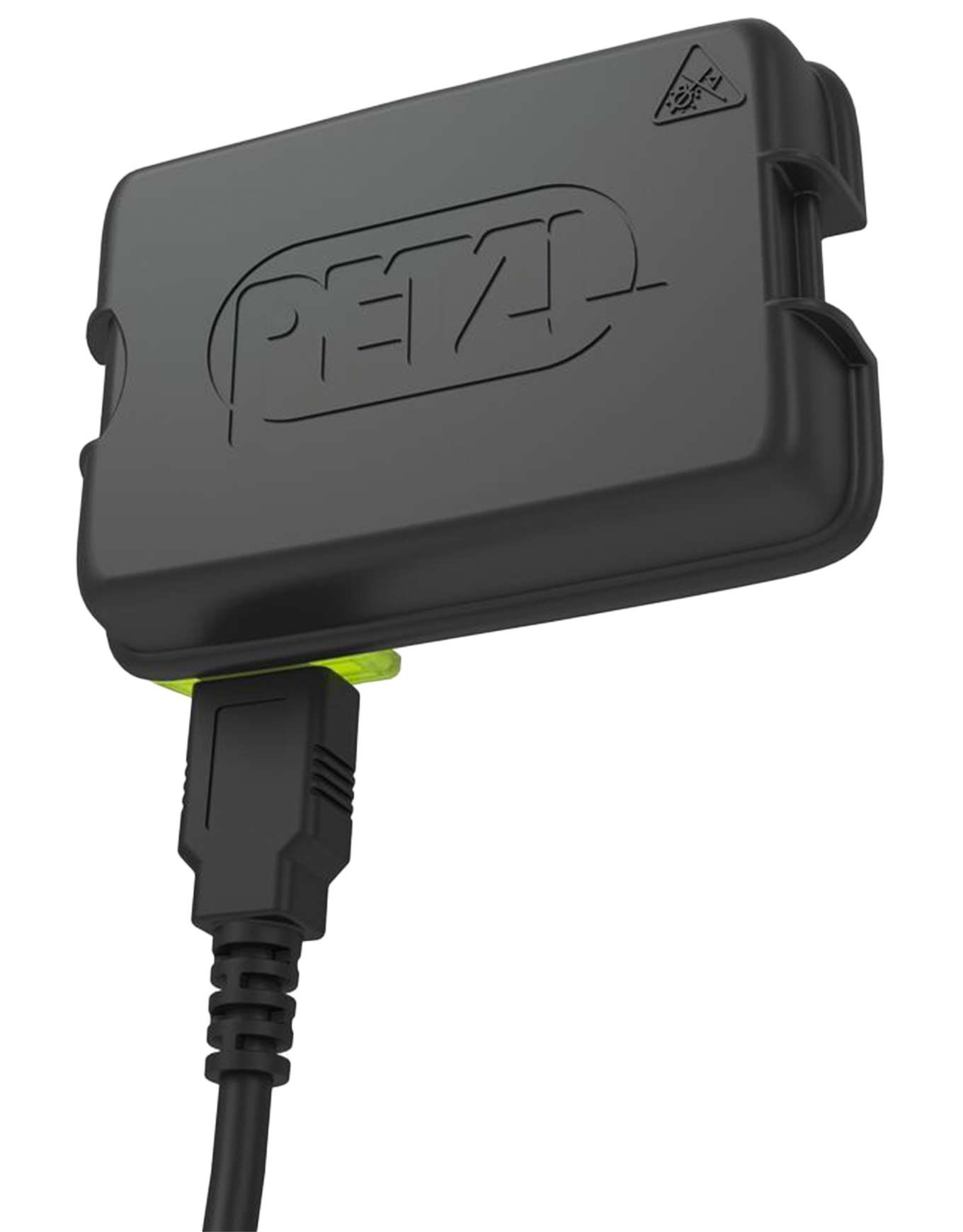 Batterie rechargeable Petzl 2350 mAh pour lampe frontale Swift RL, recharge USB-C en 6 h avec témoin lumineux de charge.