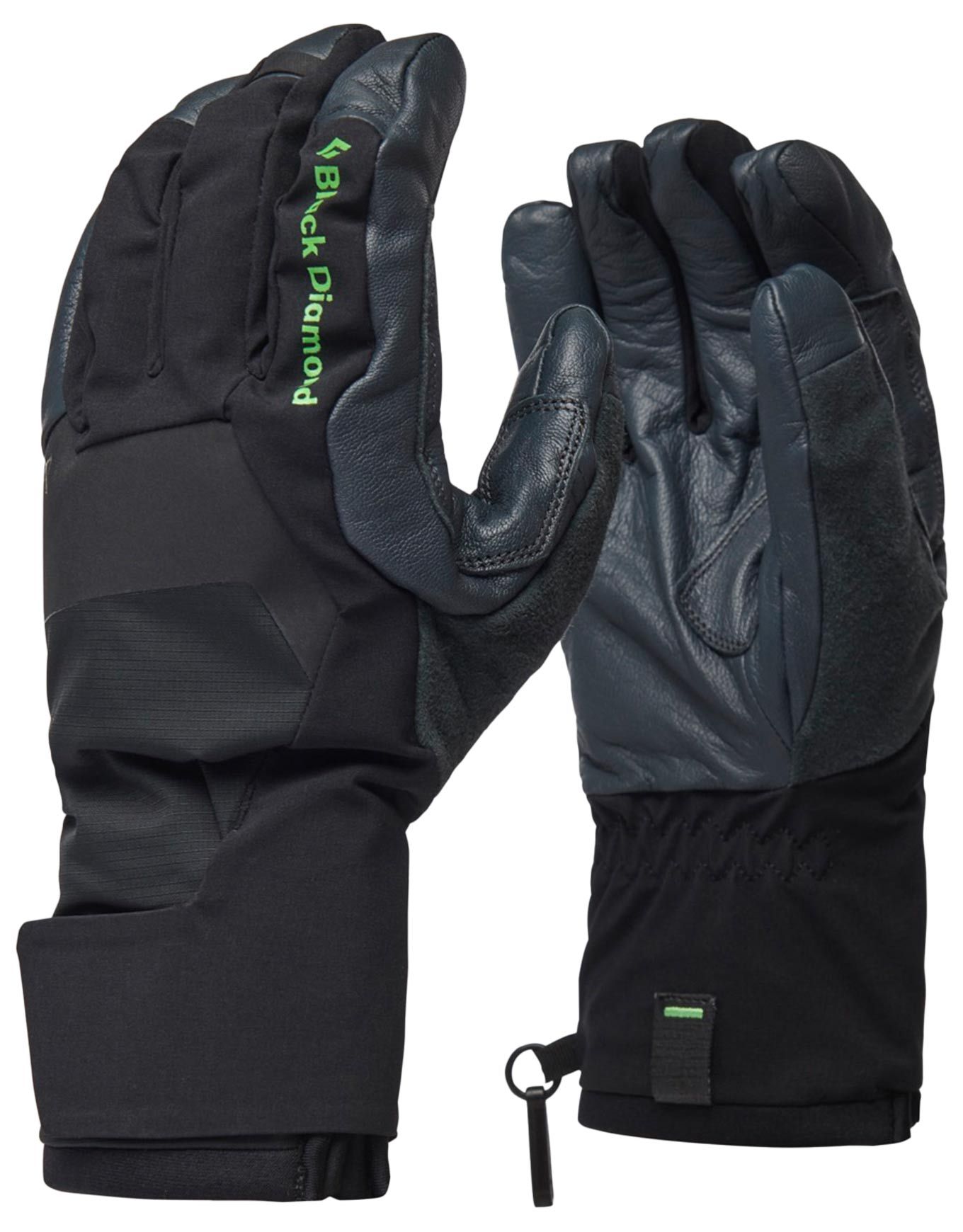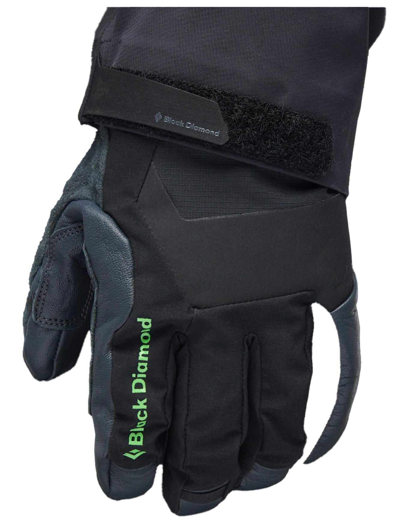 Gants Black Diamond Punisher Gloves Black : membrane BD.dry™ imperméable-respirante, isolation PrimaLoft® Gold, paume cuir de chèvre et volume réduit pour dextérité et préhension en cascade de glace.