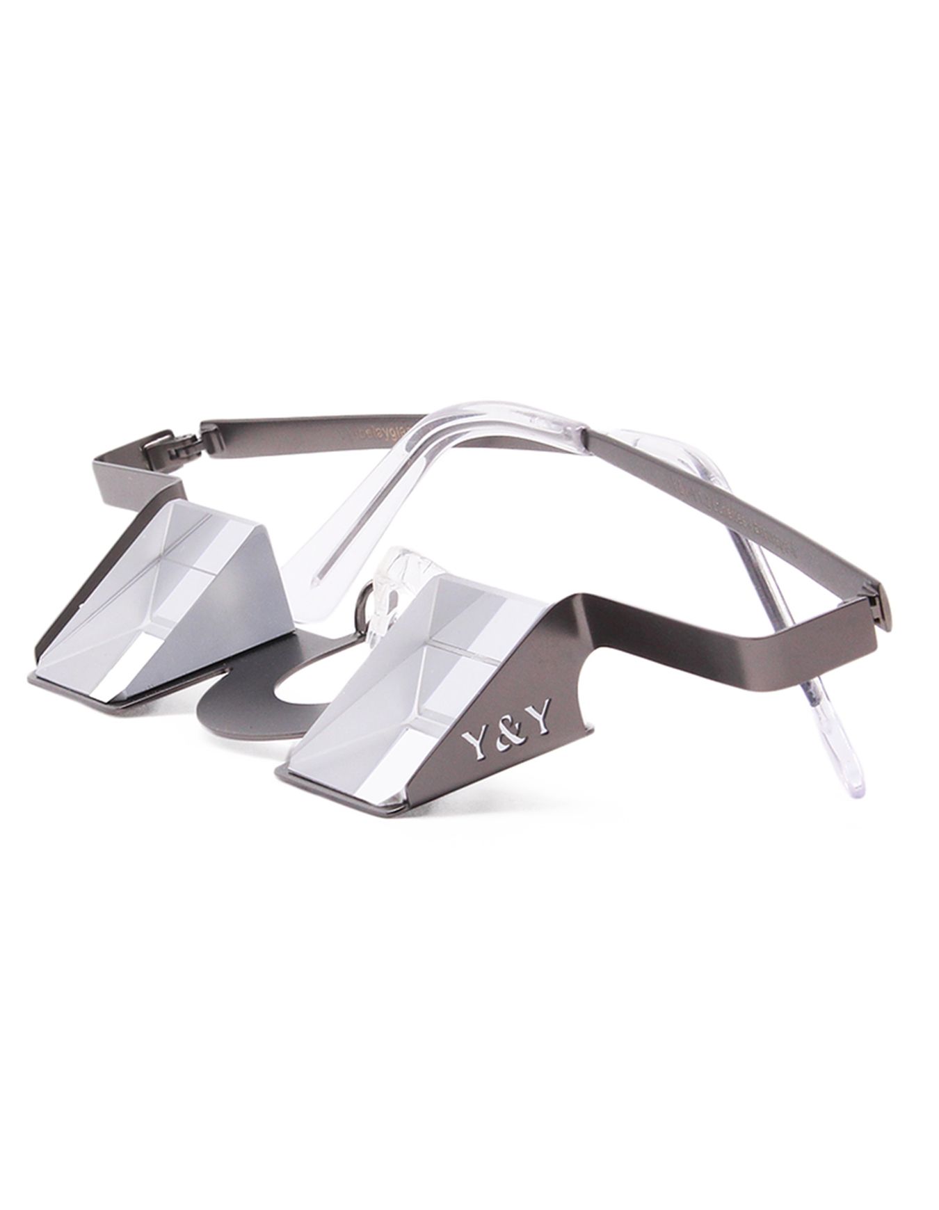YY Vertical Classic Steel Grey : lunettes d’assurage conçues pour suivre le grimpeur sans bouger la tête. Prismes de qualité, monture et plaquettes en silicone réglables pour un confort stable sur tous les visages.