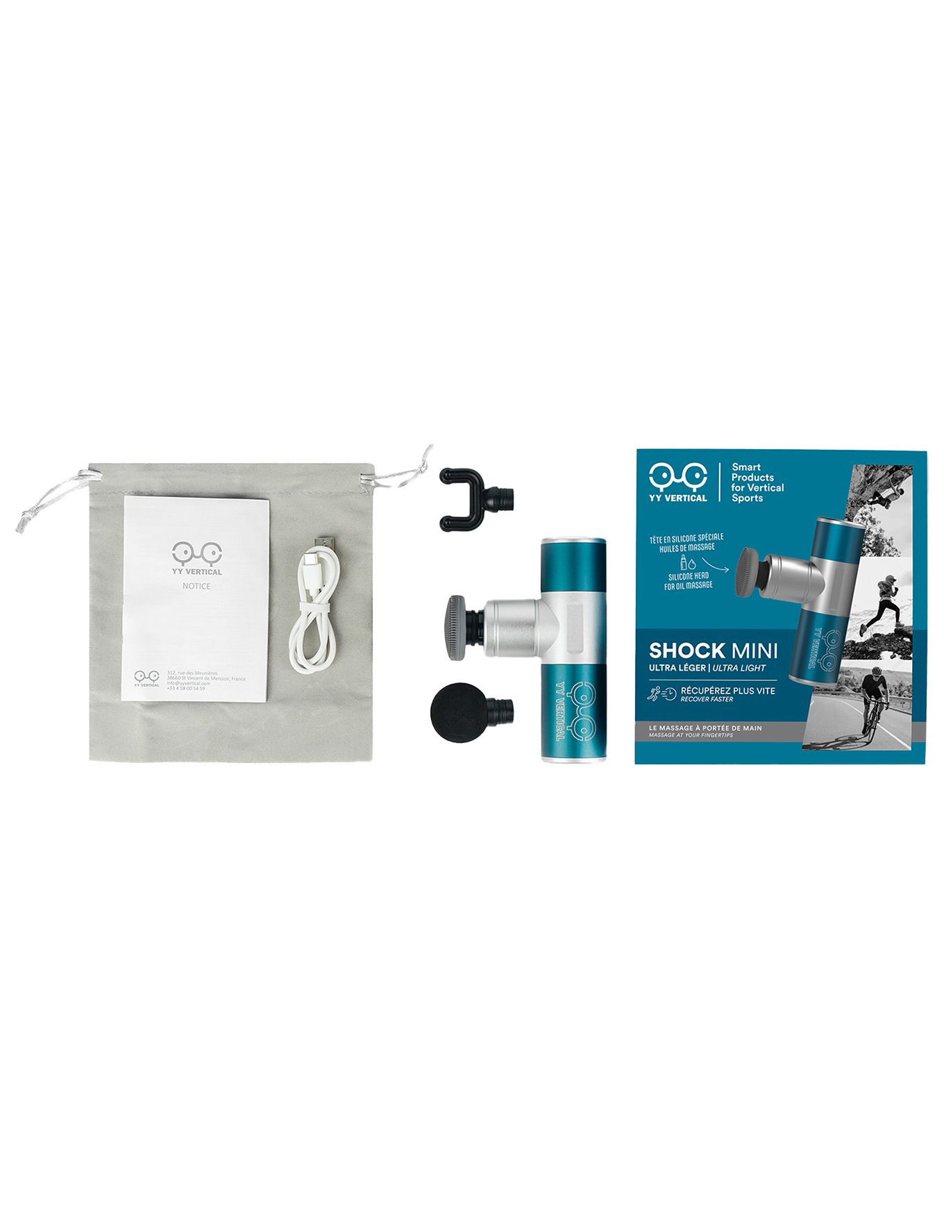 Le Shock Mini YY Vertical est un pistolet de massage ultraléger et compact, silencieux (< 50 dB), offrant 9 h d’autonomie et 4 vitesses avec 5 têtes interchangeables pour cibler les zones tendues après trail, ski, escalade, vélo ou fitness.