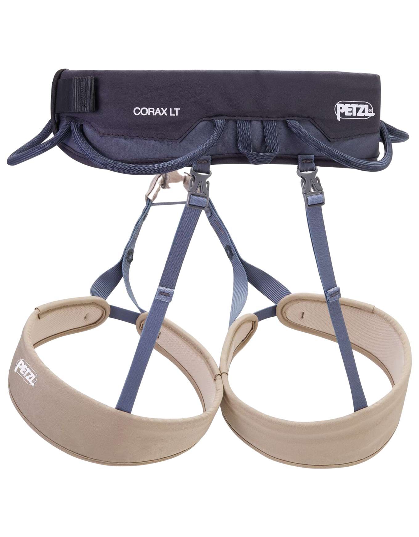 Harnais Petzl Corax LT Dark Gray, ultraléger polyvalent pour escalade, alpinisme et via ferrata, offrant réglages personnalisés, répartition optimale des charges par Frame Technology, 4 porte-matériel et confort doublé.