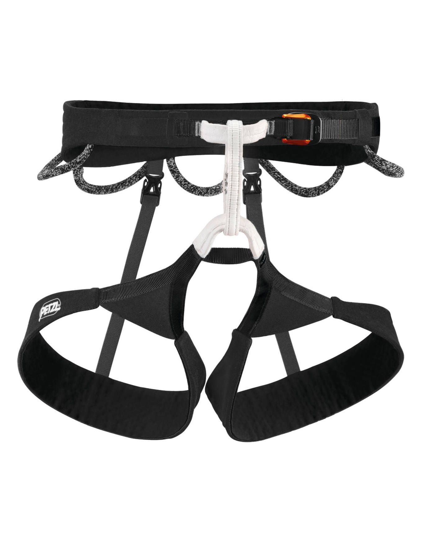 L’ajustement parfait à la morphologie et le maintien constant du harnais sont assurés par des tours de cuisses élastiques. L’équipement nécessaire trouve sa place dans les 4 porte-matériel qui offrent un espace suffisant. La résistance aux frottements au contact de la corde est améliorée par les points d’encordement en polyéthylène haute densité, ce qui renforce également la durabilité du harnais.