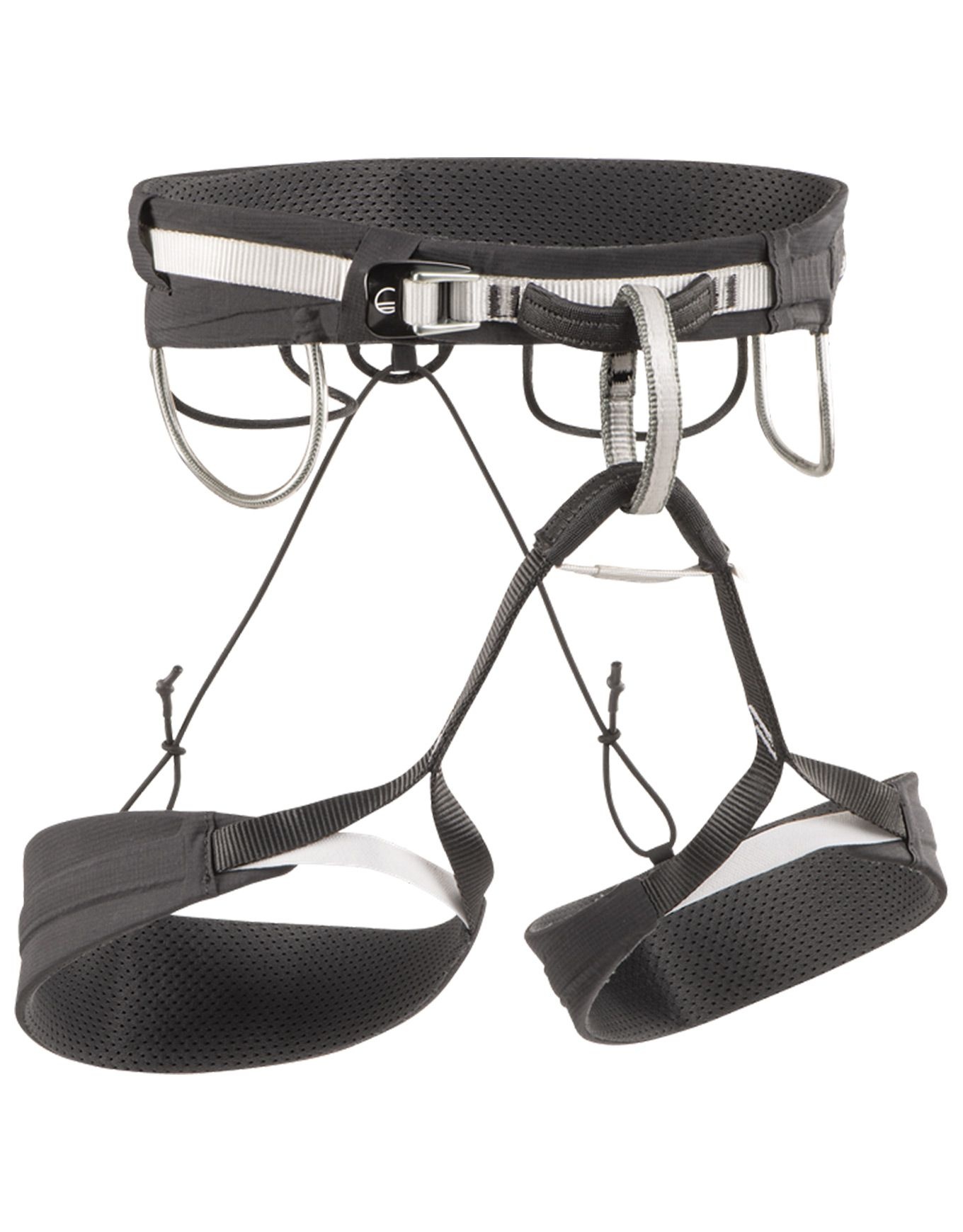 Côté équipement, deux porte-matériels rigides sont positionnés à l’avant tandis que deux autres, souples cette fois, se trouvent à l’arrière pour permettre le port confortable d’un sac à dos. Un système d’indication d’usure est intégré à la boucle d’assurage, offrant une sécurité optimale. Des fils rouges intérieurs matérialisent cet indicateur : leur visibilité signale que la boucle a subi une usure suffisante pour nécessiter le remplacement du harnais.