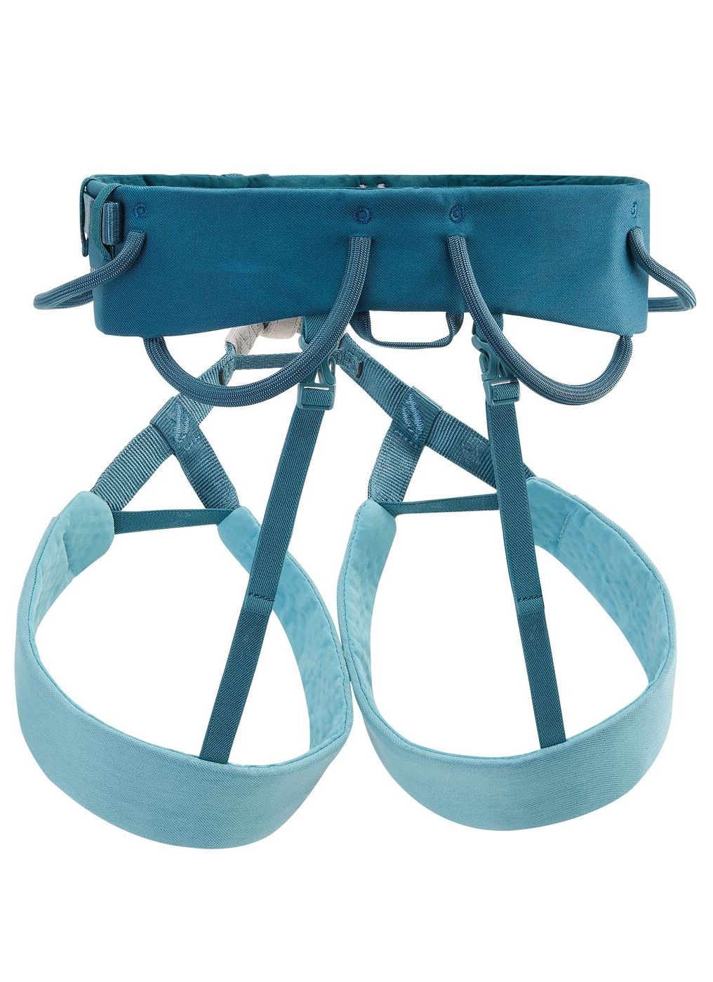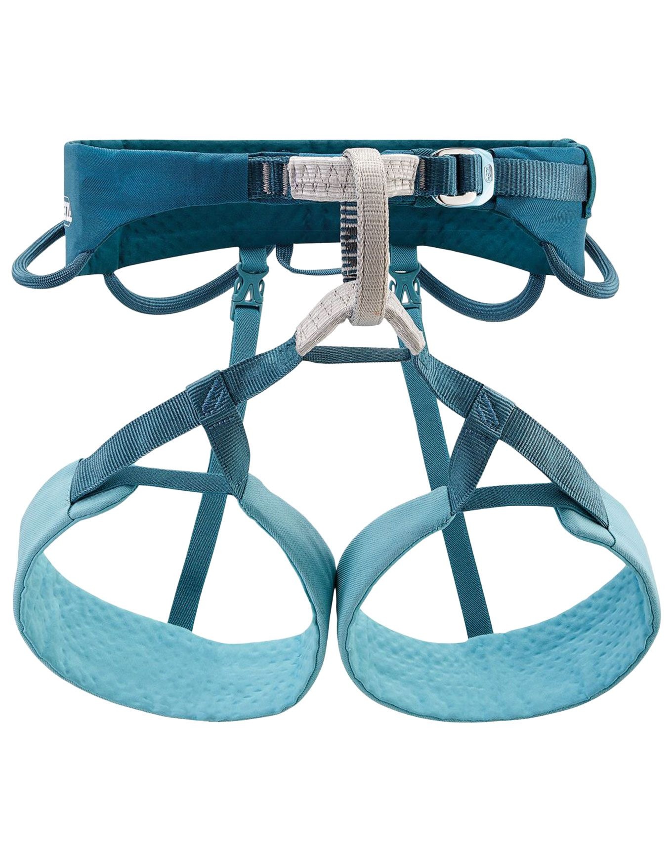 Le baudrier Petzl Sama Atlantic Blue répartit la charge par la technologie FRAME et offre liberté de mouvement, respirabilité, 4 porte-matériel et compatibilité glace pour l’escalade salle, falaise ou grande voie.