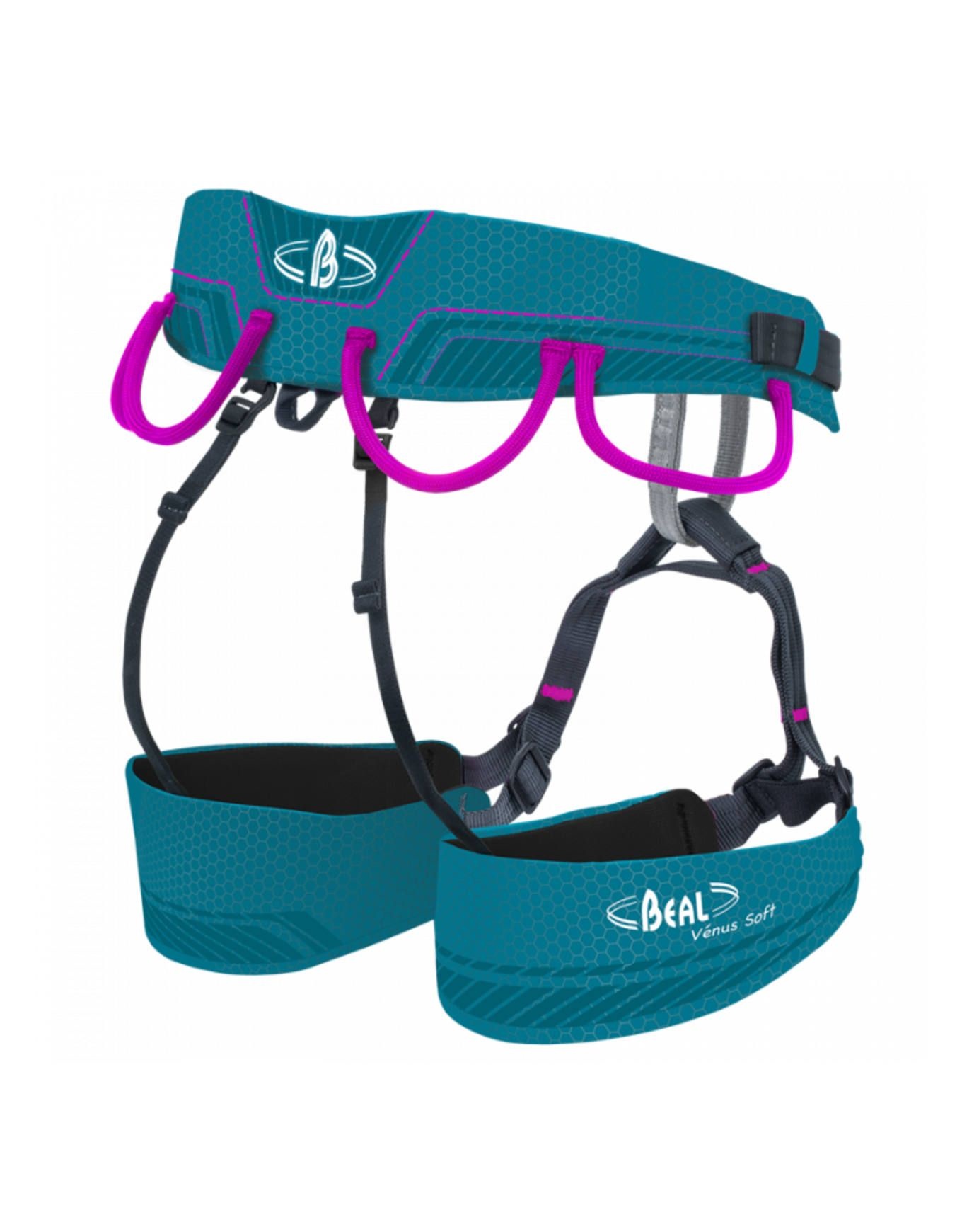 Conçu spécifiquement pour s’adapter à la morphologie féminine, le harnais ajustable Venus Soft de Beal intègre une technologie Web-Core Soft assurant un confort remarquable par une distribution uniforme des pressions au niveau des hanches et des cuisses. L’ajustement des cuisses s’effectue de manière rapide et précise grâce au système ultra-léger Dynamic-Fit (sous licence BlackDiamond). Destiné aux grimpeuses de niveau confirmé souhaitant allier confort et légèreté, ce modèle se distingue par sa compacité et son poids réduit.