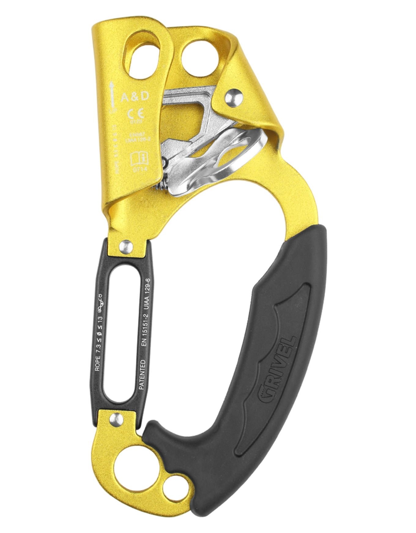 Grivel A&D : ascendeur-descendeur 2-en-1 pour progression et rappel en montagne, ergot large compatible gants, anneau de longe intégré, compatible mousqueton HMS.