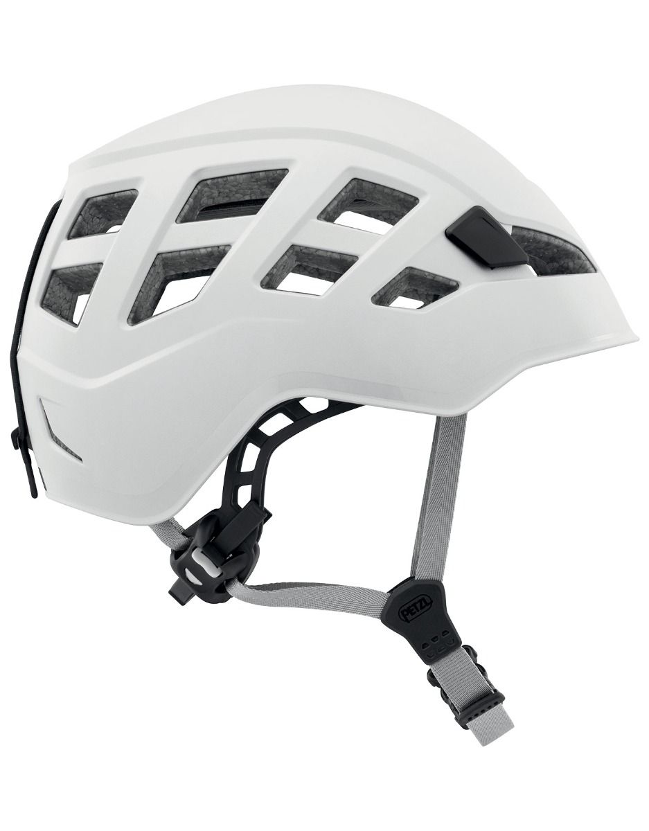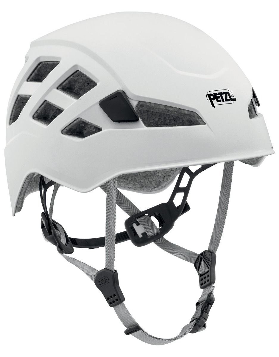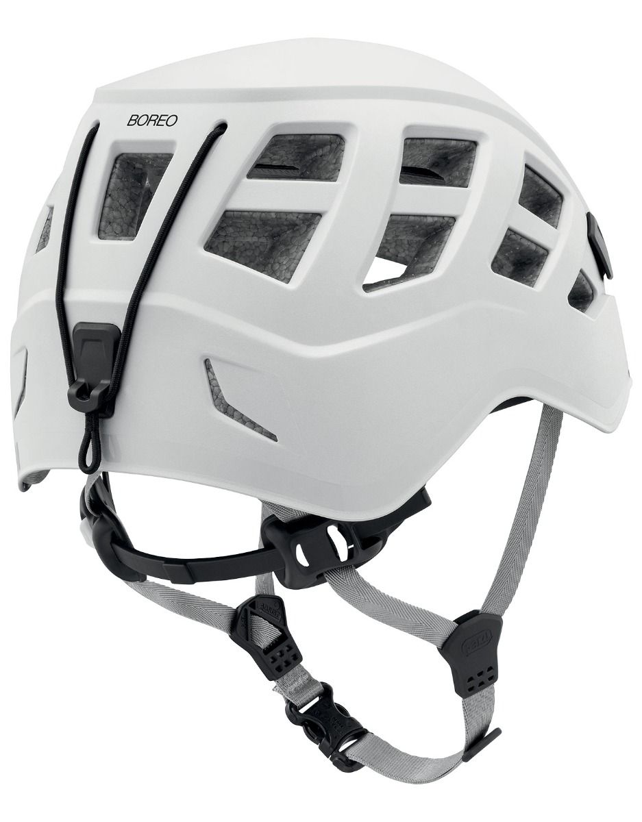 Casque Petzl Boreo polyvalent pour escalade, alpinisme, spéléologie, via ferrata et canyoning. Construction hybride compacte et couvrante, coque ABS et calotin EPP pour une protection avant-arrière-latérale renforcée.