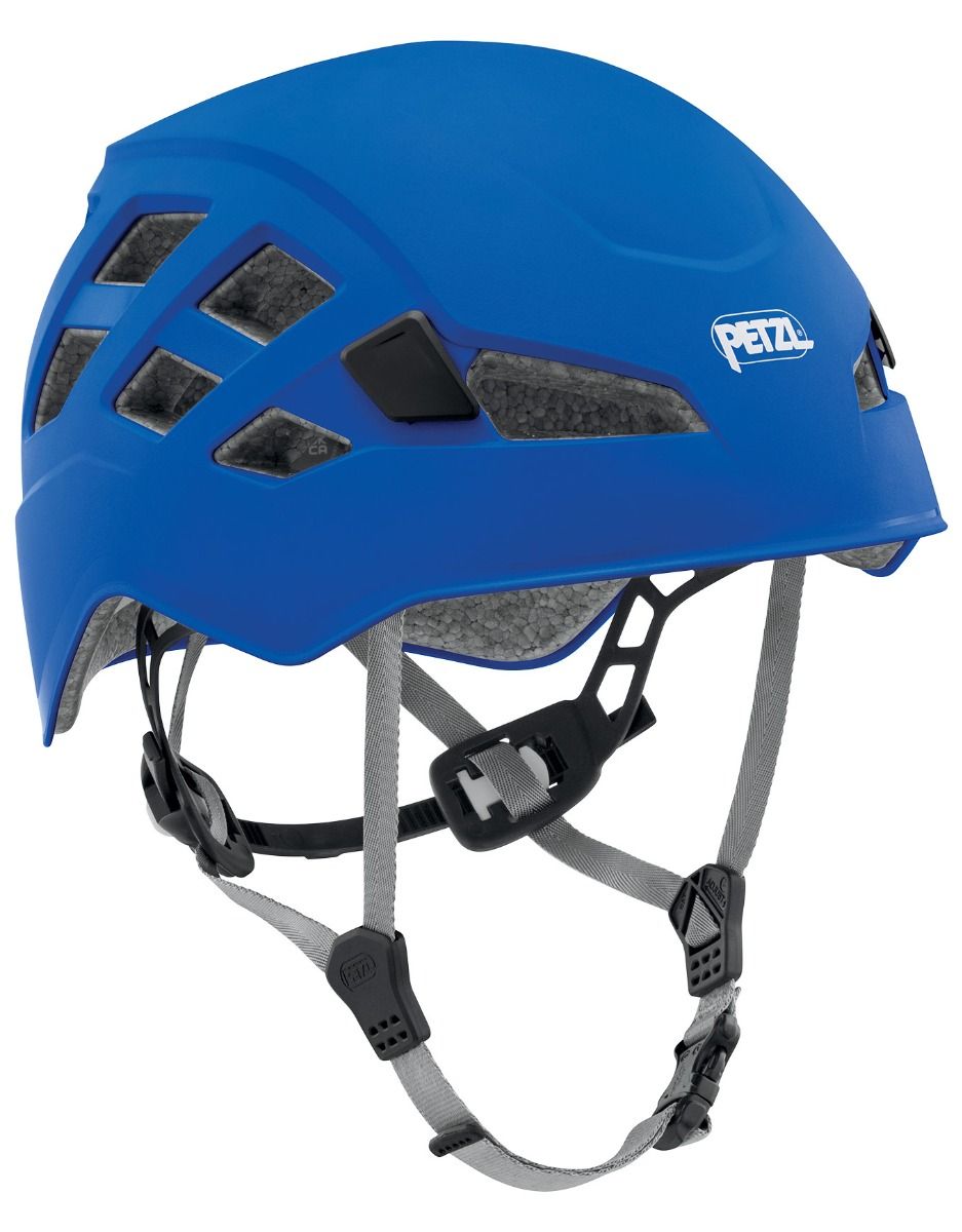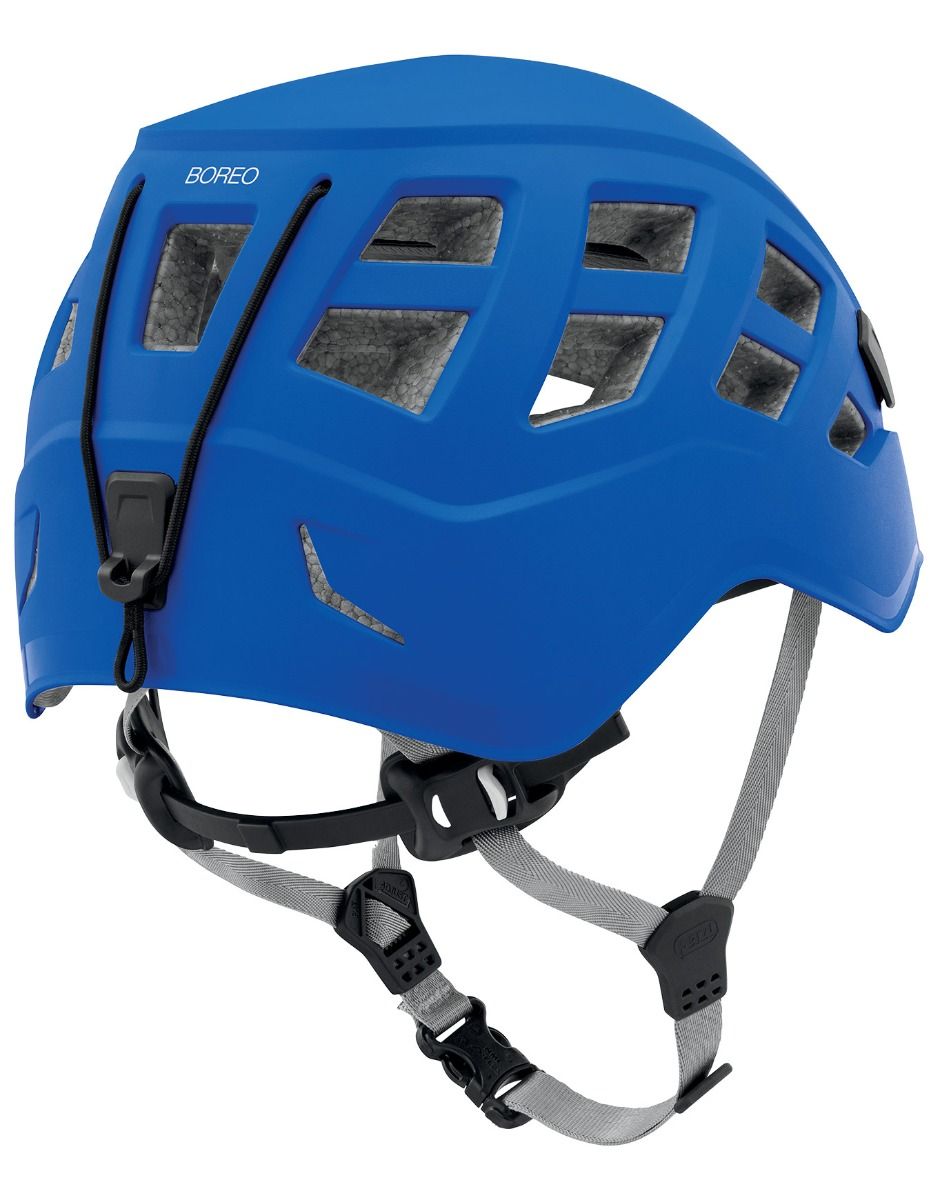 Casque Petzl Boreo polyvalent pour escalade, alpinisme, spéléologie, via ferrata et canyoning. Construction hybride compacte et couvrante, coque ABS et calotin EPP pour une protection avant-arrière-latérale renforcée.