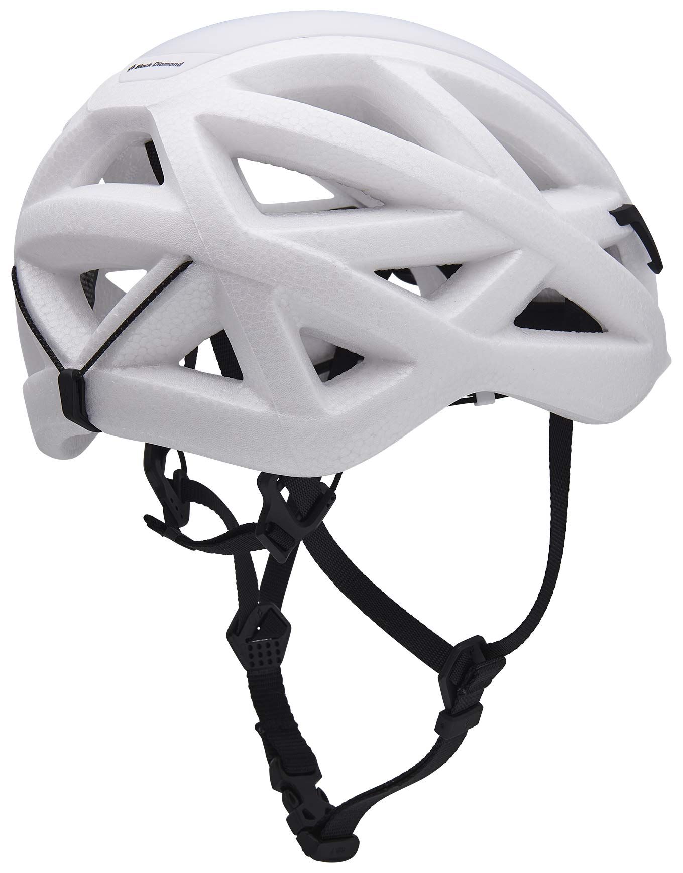 Black Diamond Vapor Helmet White : casque d’escalade et d’alpinisme ultra-léger en mousse et coque polycarbonate, très ventilé, réglage précis et crochets lampe frontale amovibles.