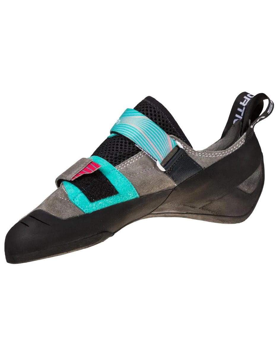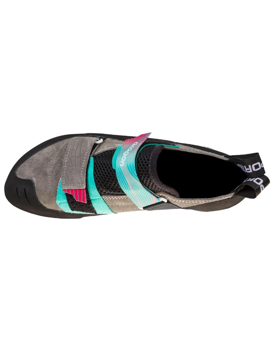 La Sportiva Aragon est un chausson d’escalade femme conçu pour débutantes et grimpeuses intermédiaires, offrant confort et maintien sur structure indoor comme en falaise. Fermeture double Velcro®, cuir non doublé, cambre léger, coupe adaptée aux pieds larges.